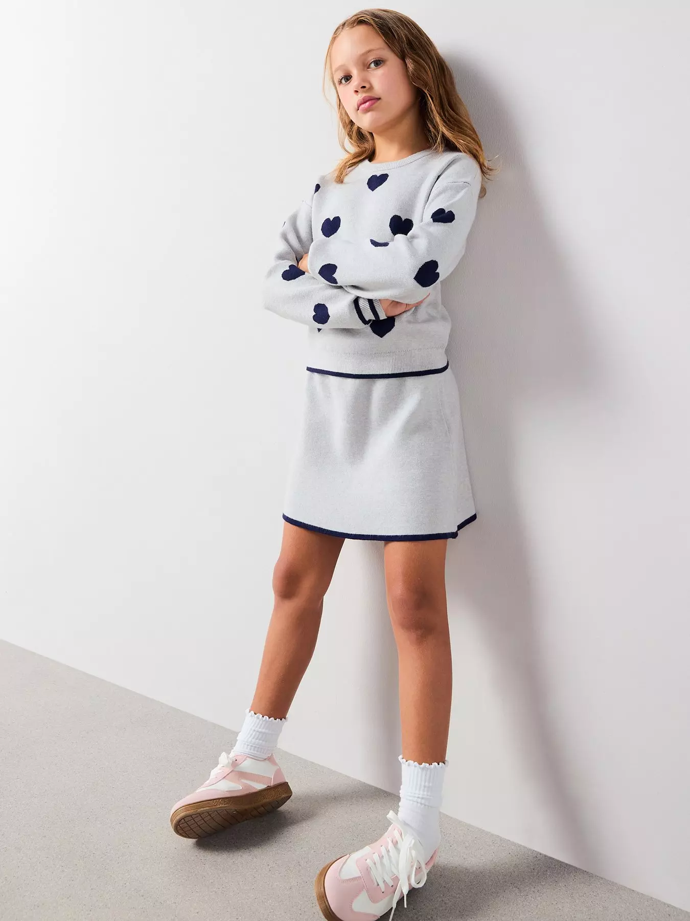 The Very CollectionGirls Heart Print Knitted Jumper and Skirt Set - Grey