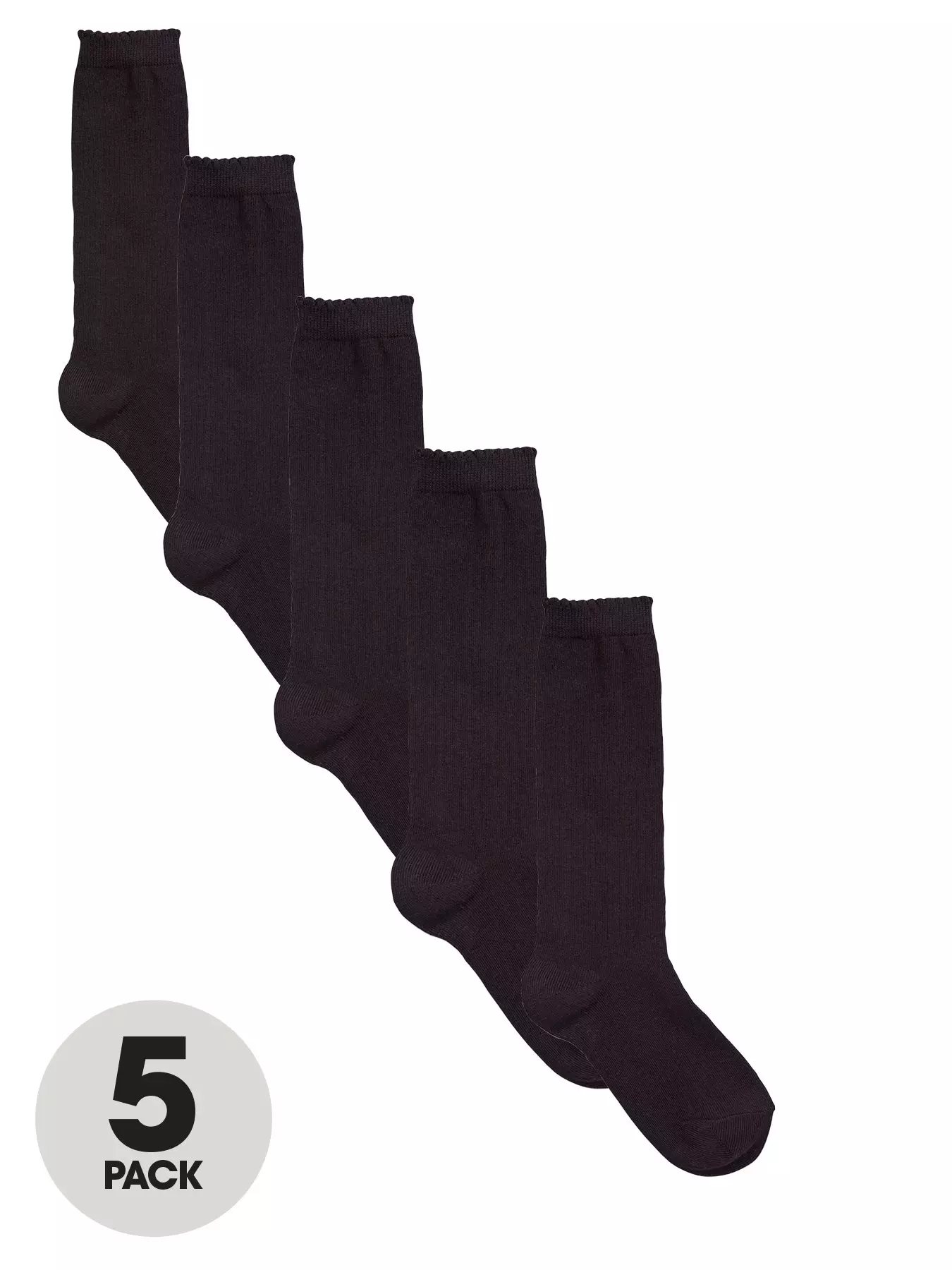- A school essential in bulk, this bundle of girls knee-high socks by Everyday is smart in black. The great-value set includes five pairs in knee-length with scalloped and ribbed trims.