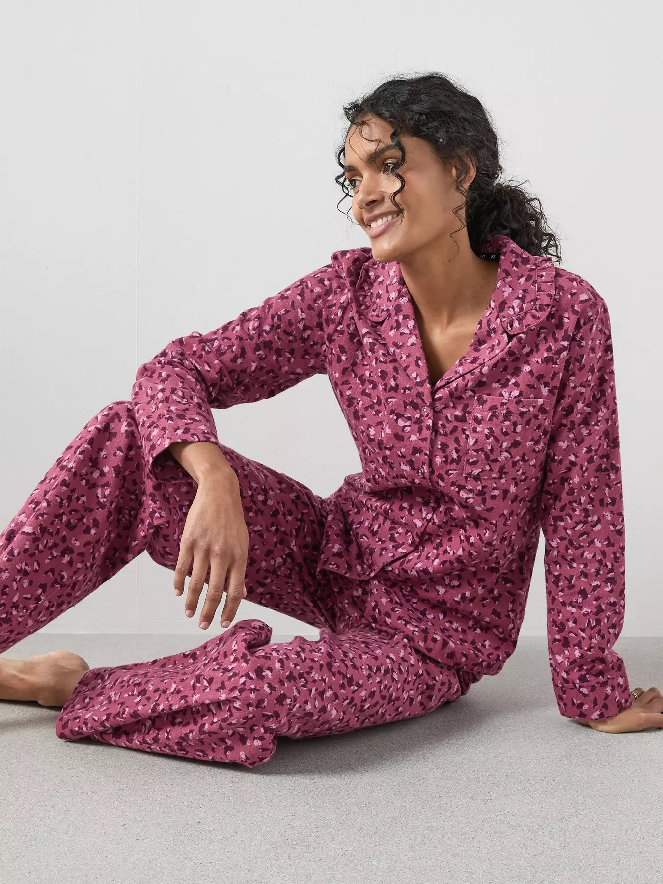 The Very Collection Leopard Print Frill Collar Revere Pj Set