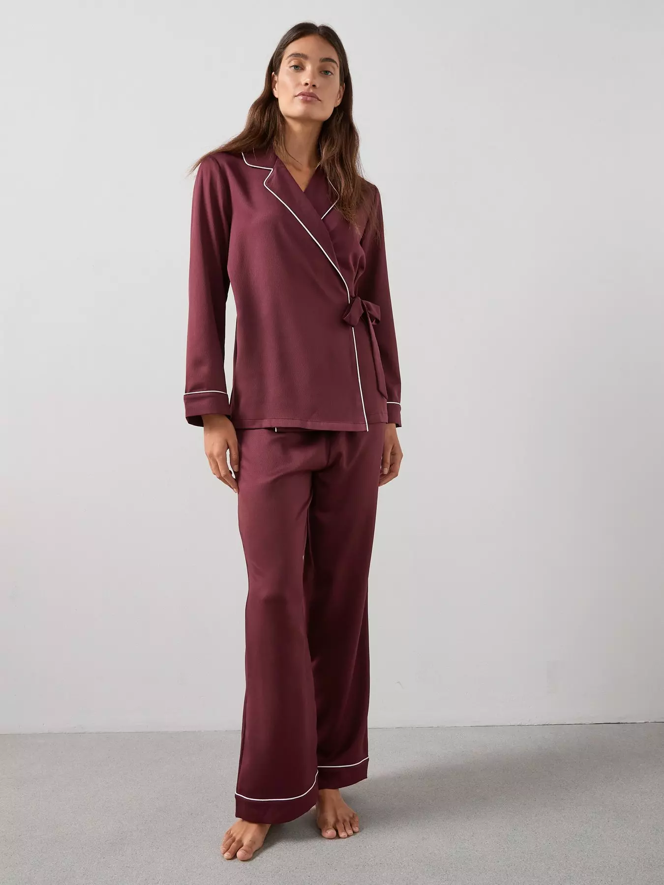 The Very CollectionSatin Wrap Revere Pyjama Set - Dark Red
