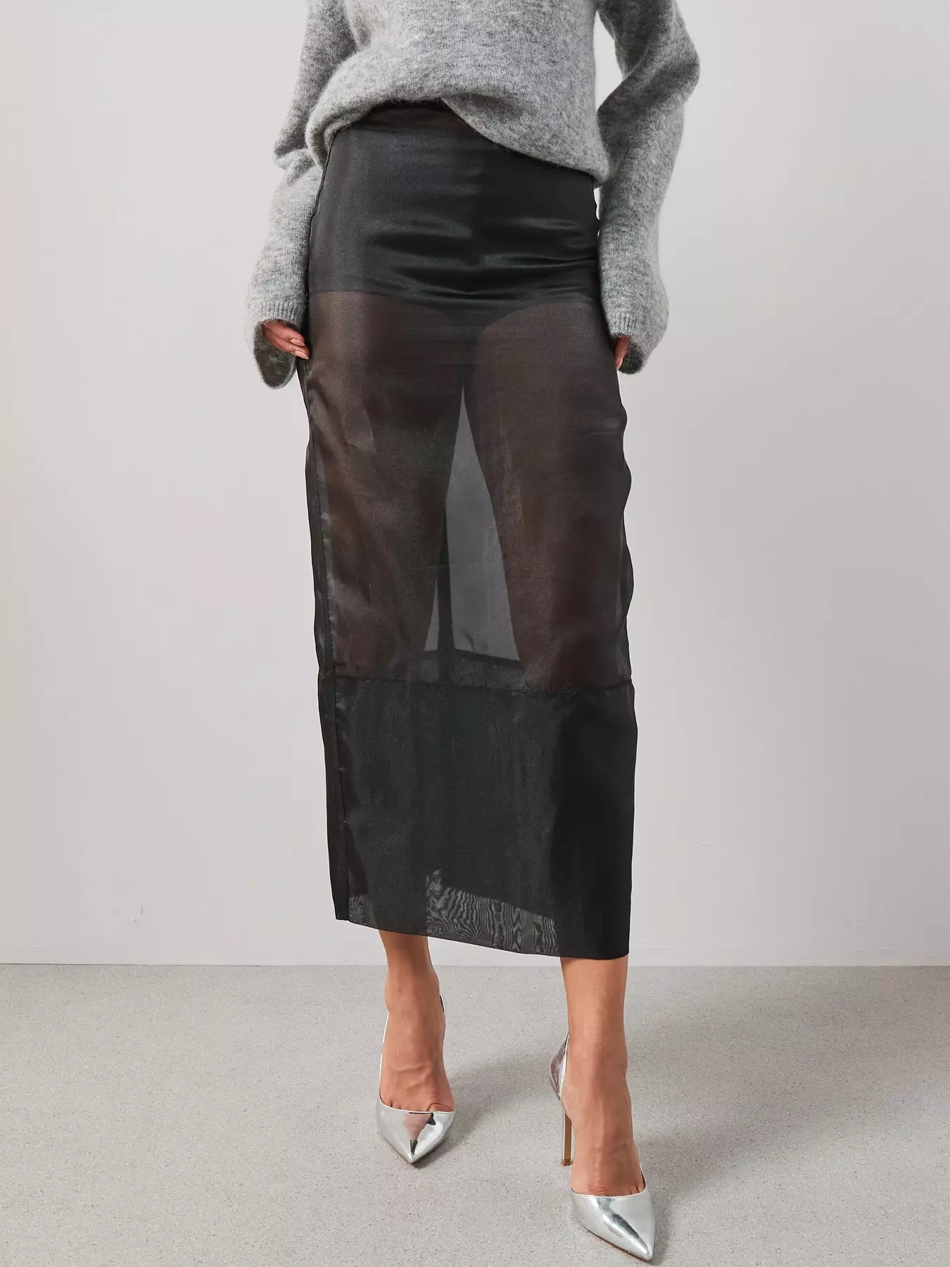 The Very Collection X Carol Byrne Sheer Organza Fitted Pencil Skirt - Black
