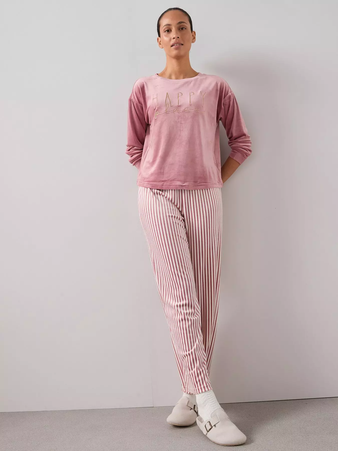 - Slogan Sweat And Stripe Fleece Bottom Pj Set by The Very Collection