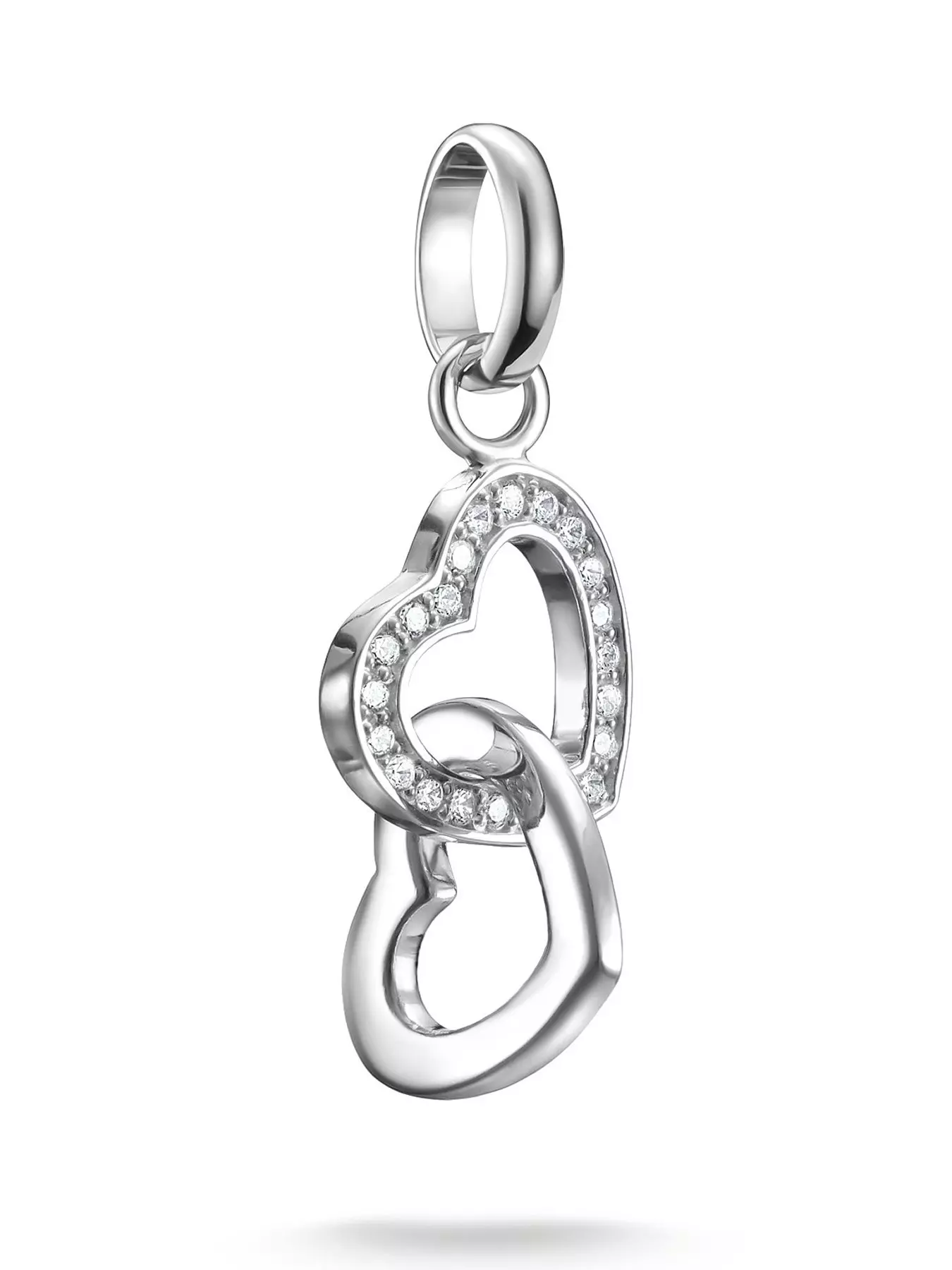- The upper heart is set with white zirconia stones, while the lower heart shines in purist silver.