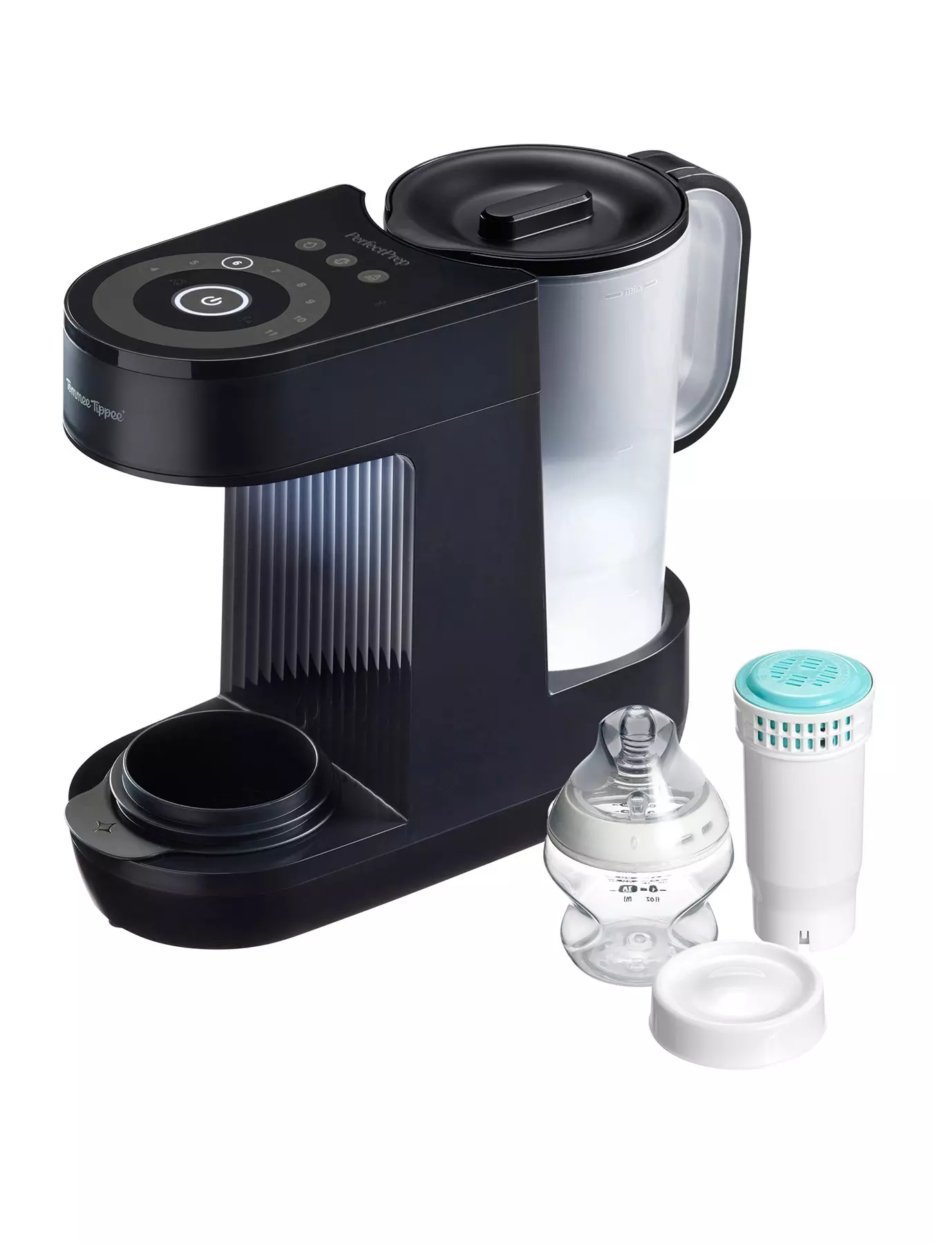 Makes a body temperature bottle in just 90 seconds (that's up to 10x faster than a kettle). It's quick, quiet, and scientifically proven to make a fresh formula feed as safely as the NHS method. Baby bottle preparation made even more perfect. 1. Scoop formula powder into a sterile bottle 2. Select feed size on the one-touch dial 3. Press the power button to add the hot shot 4. Twist on a milk lid, and swirl to mix 5. Press the power button to add the remaining cool filtered water - The antibacterial filter is as effective as boiling water, and our patented hot shot kills bacteria in formula - Smooth water dispenser and soft lights for less disruptive night feeds - 4-11oz feeds, one-touch selection - Fresh bottles for baby, fresh water for you (and the whole family). Use the removable jug to store and serve filtered water - Intuitive iOS and Android app with set up guides, product support and filter reordering Comes with a milk storage lid, a 150ml Natural Start baby bottle and an antibacterial filter that lasts up to 3 months, your machine will let you know when it's time to fit a new filter. *Based on a 5oz feed, room temperature water tank, refers to time from start of hot shot to completion of cool shot. For verification see tommeetippee.com/perfect-prep-explained. If you use your water jug for daily water consumption in your household (outside of the machine) you should change your Tommee Tippee water filter every 4 weeks to ensure optimum performance. Based on preparing 6x 9oz bottles per day.Use the right and left arrows to scroll through the image carouselPage 1 of 322