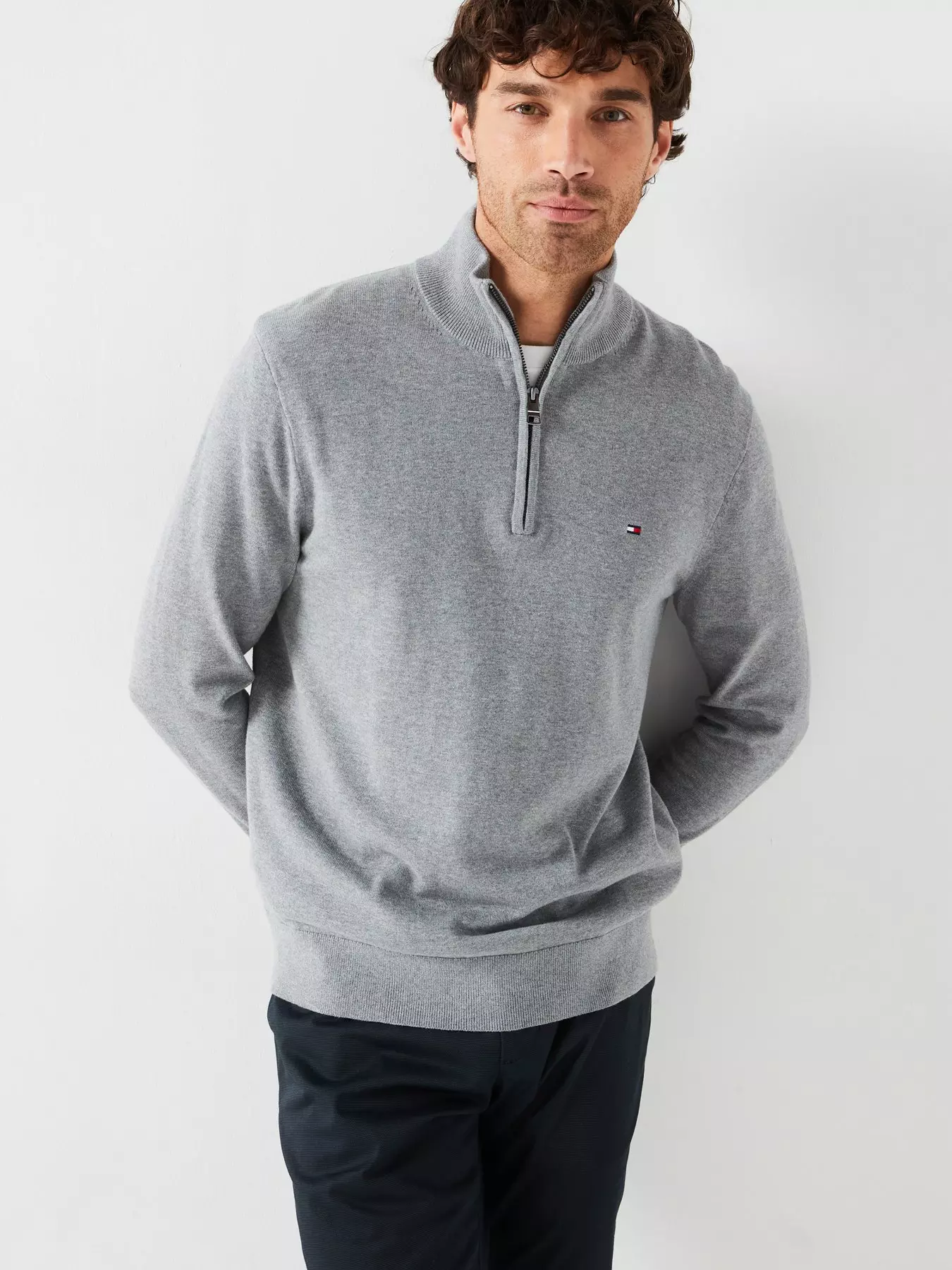 Tommy HilfigerEssential Cotton 1/4 Zip Mock Knitted Jumper - Grey