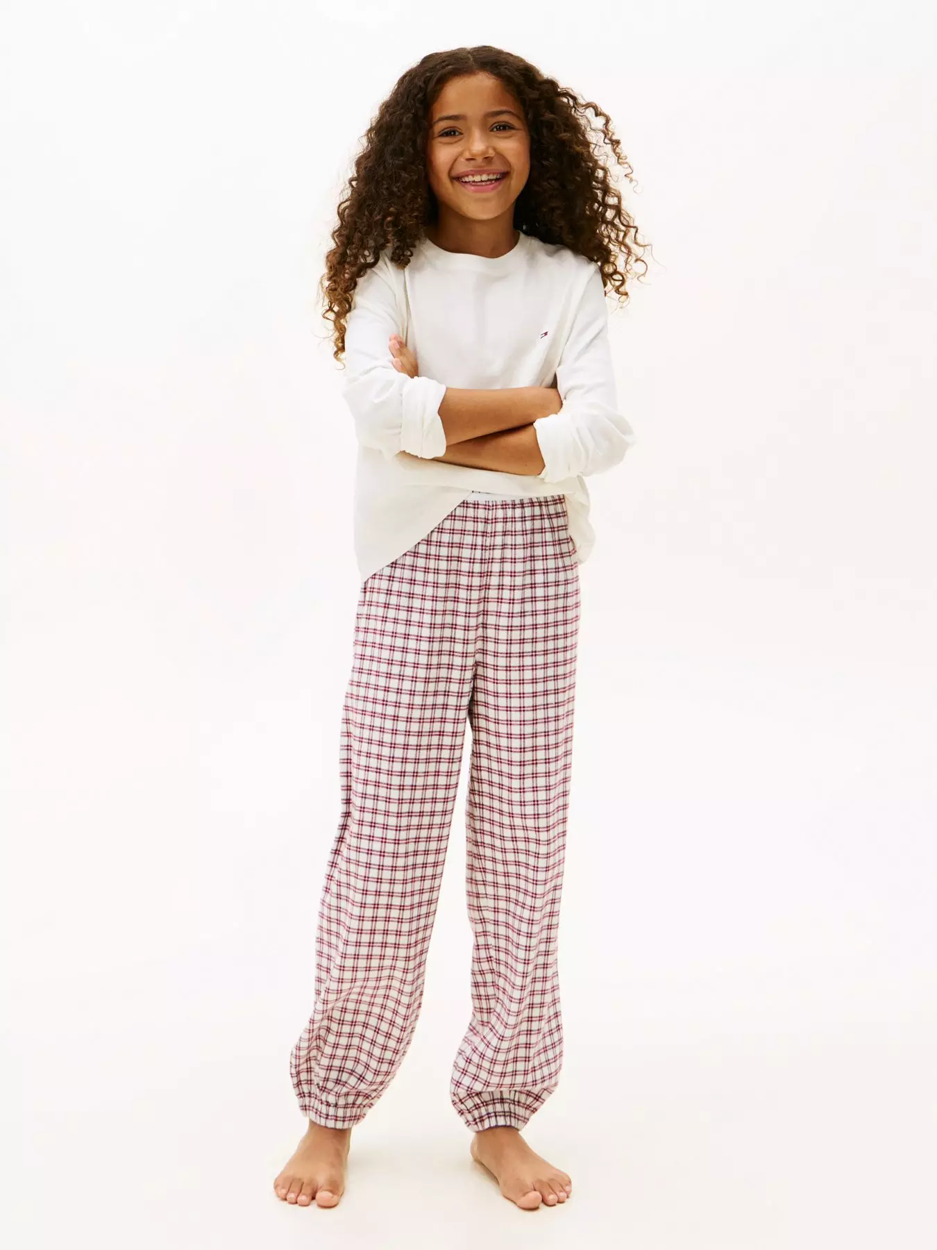 - Girls Long Sleeve Cuffed Pyjama Set - Ivory Silk/Mini Plaid Ivory Silk by Tommy Hilfiger