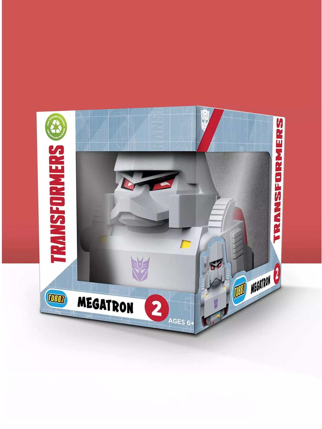 As leader of the evil Decepticons, Megatron will stop at nothing to beat his heroic adversary, Optimus Prime, even if hes transformed into a cosplaying duck! Coming in a Transformers branded box, this one-of-a-kind collectible is great for fans of the series to stock up on.This officially licensed collectable is part of the TUBBZ range, a highly collectible series of your favourite characters from video games, movies, TV shows, and pop culture-all in duck form!- Official Hasbro merchandise