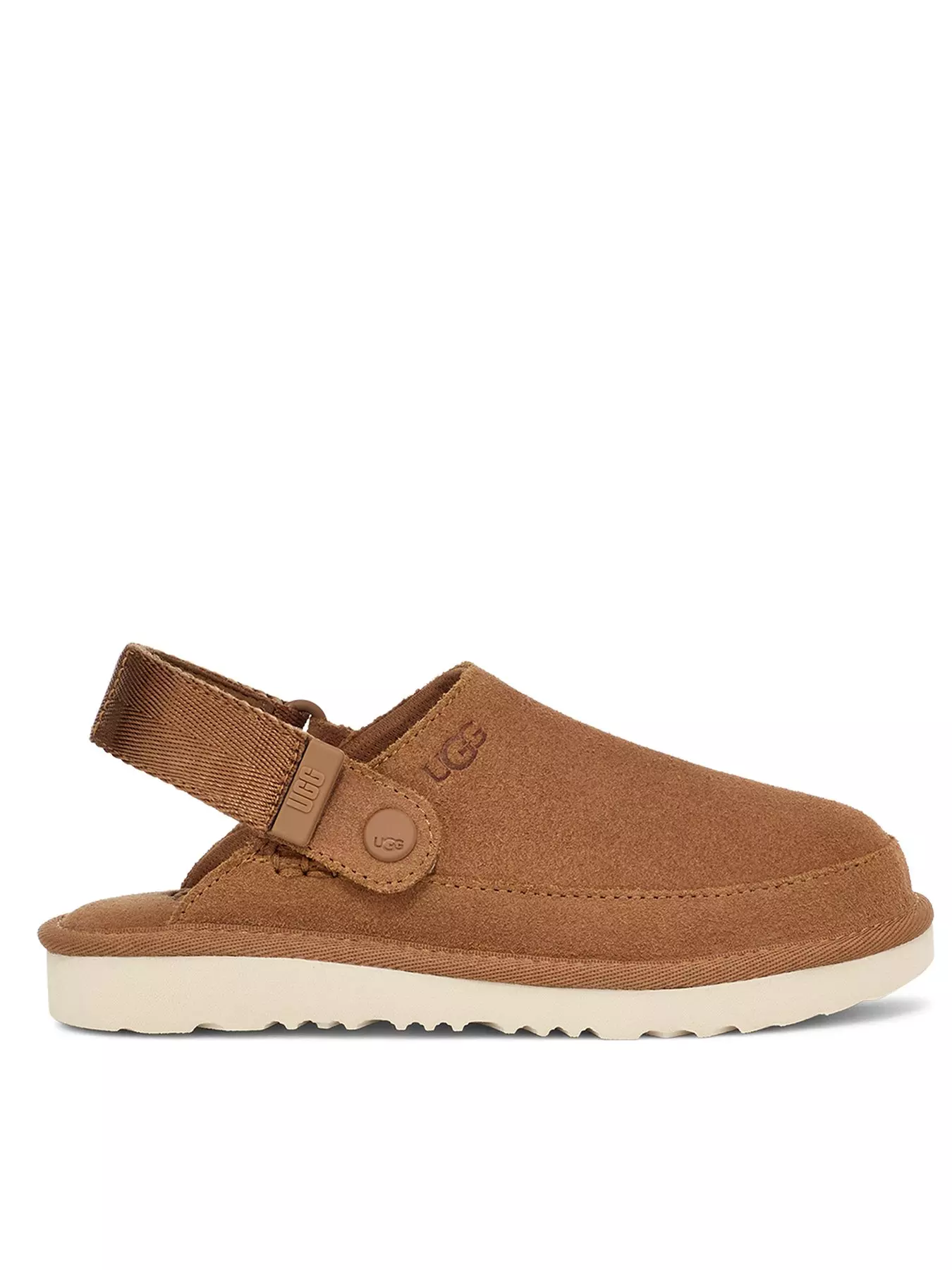 Inspired by our UGG® Classic boot, the Goldencoast Clog is made with the same elements of comfort and versatility. We designed these with our smooth suede upper and lightweight sugarcane EVA outsole. An anti-odor-treated textile lining helps keep little feet fresh, while our adjustable heel strap helps these slip-ons stay put. A style for the whole family, the Golden Collection is available in Mens, Womens, and now, Kids.- Material Content: 100% Leather