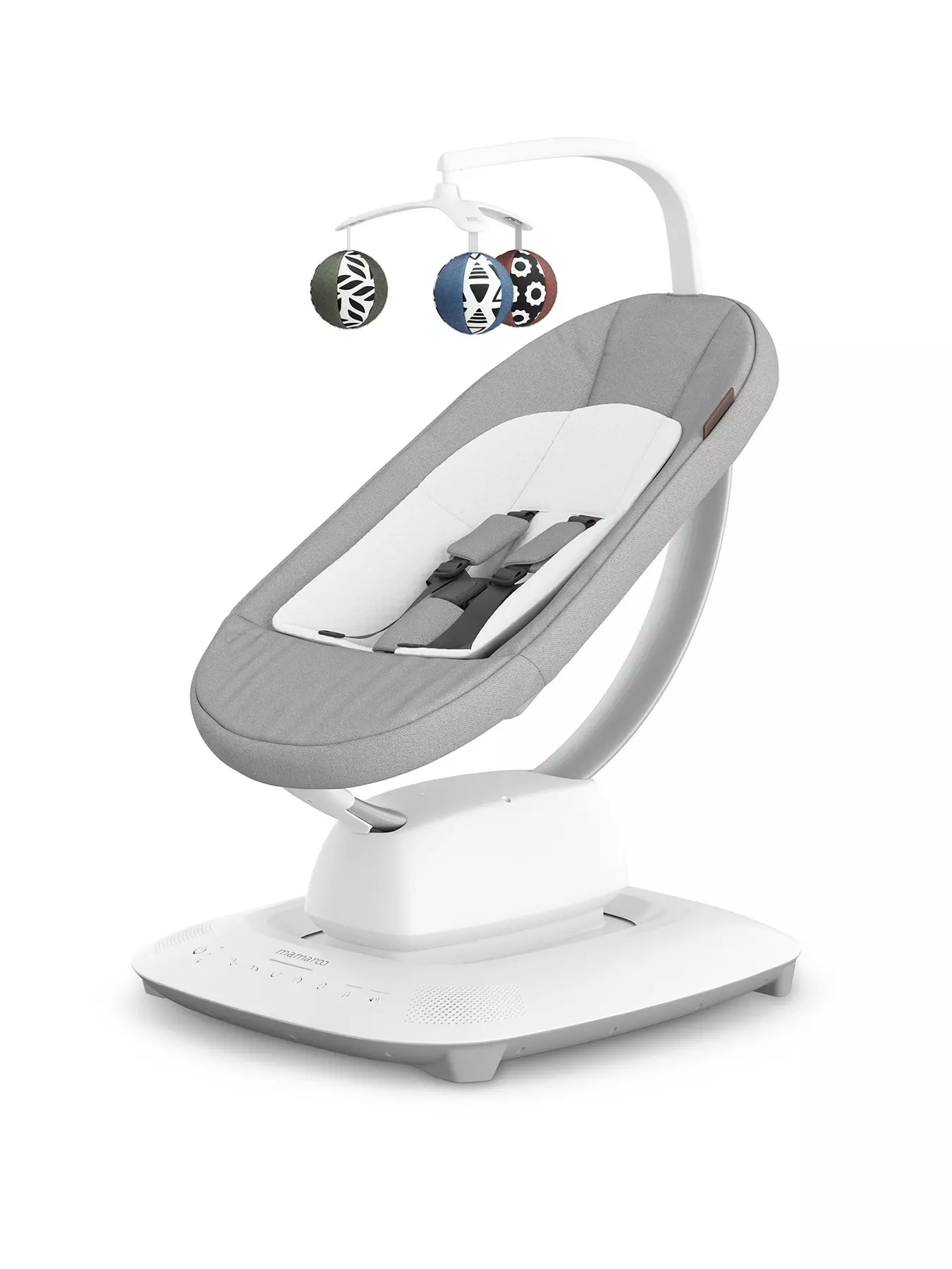 The MamaRoo also features built-in sounds and the option to connect your own device to play your baby's favourite music. Simple touch controls make it easy to adjust motion and sound settings, while the compact footprint fits neatly into the home.