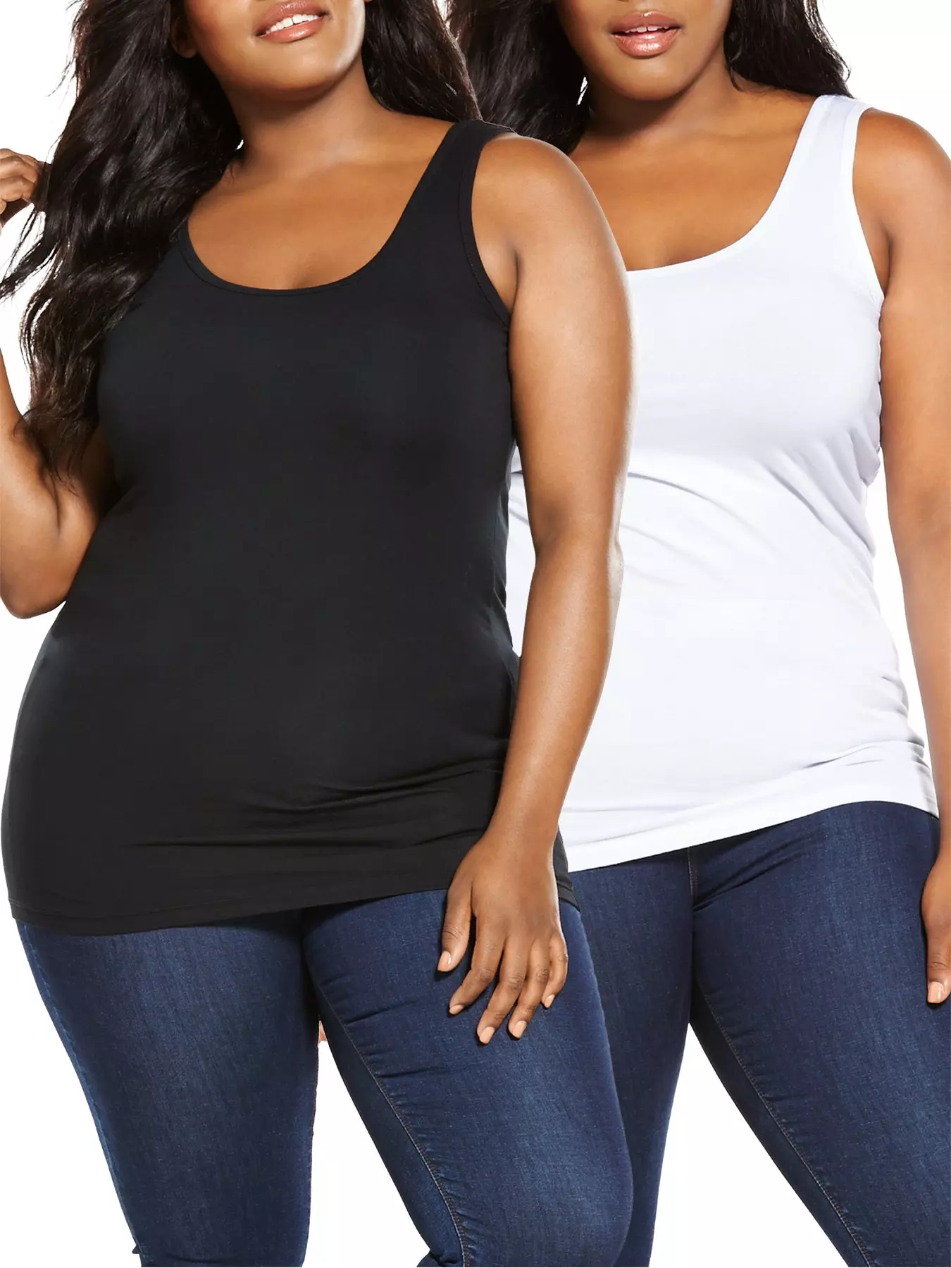 V by Very CurveLongline Slim Fit Vests (2 Pack) - Black/White