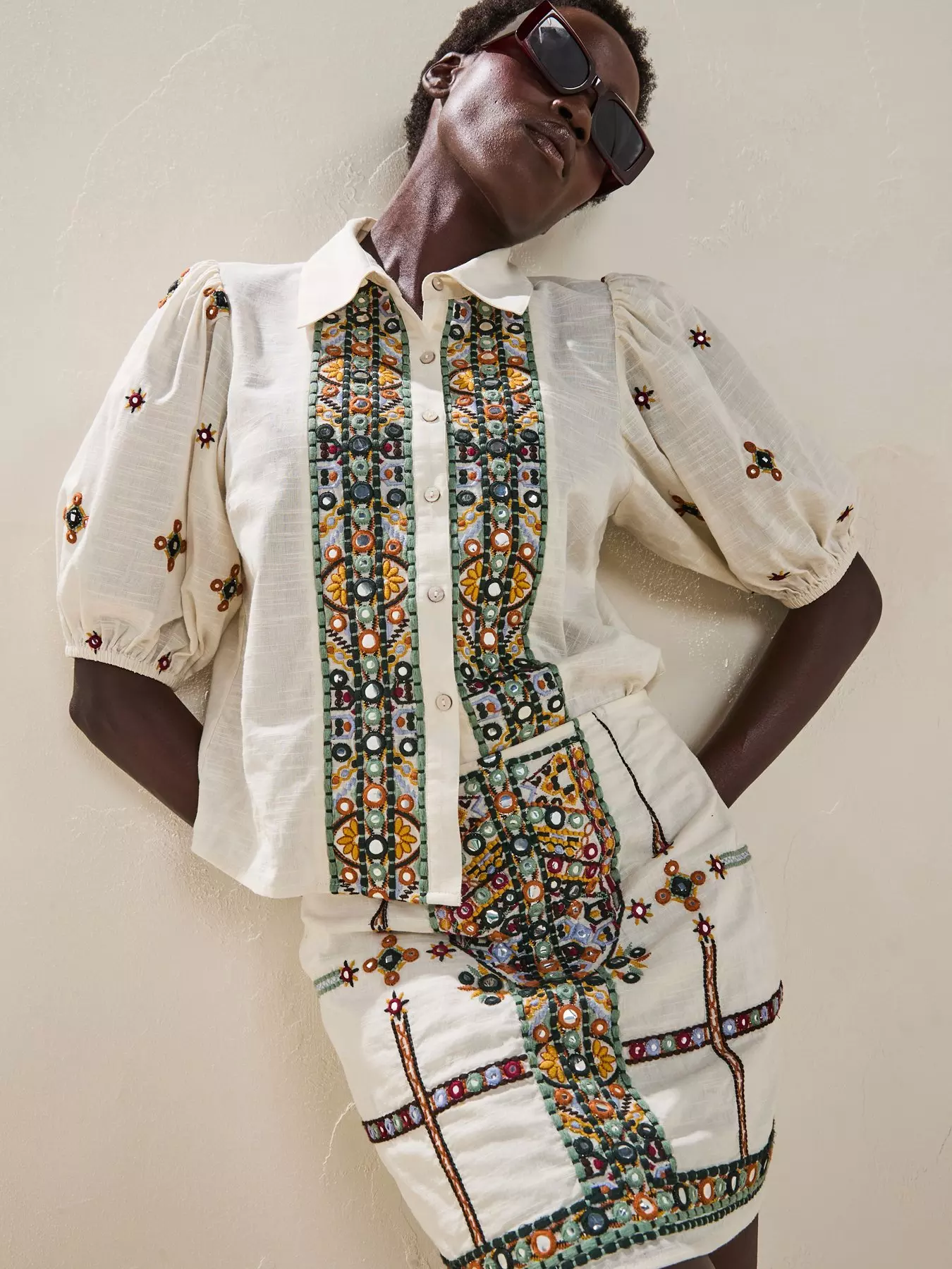 - Embroidered detail to the sleeves