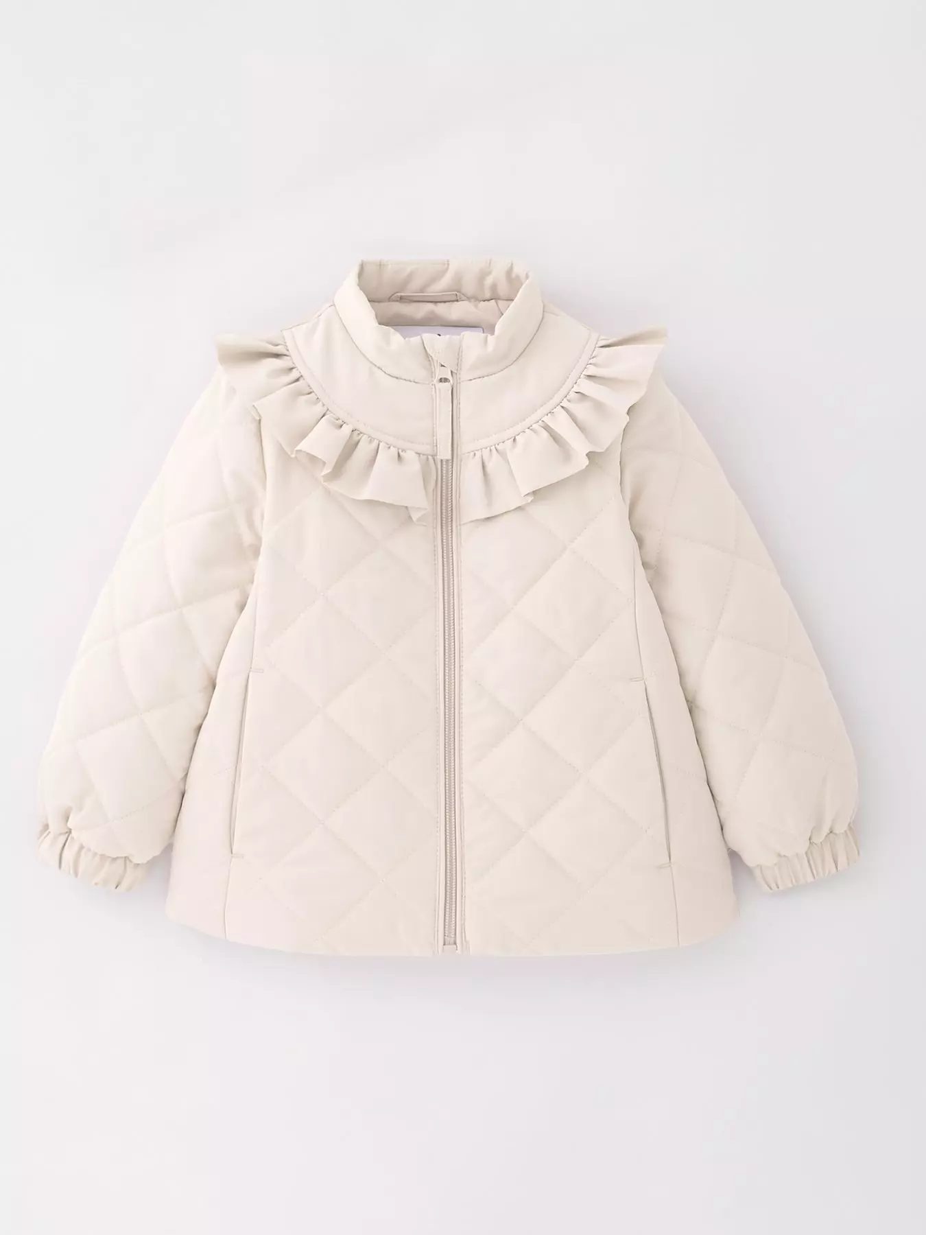 V by VeryGirls Quilted Frill Shower Resistant Coat - Cream