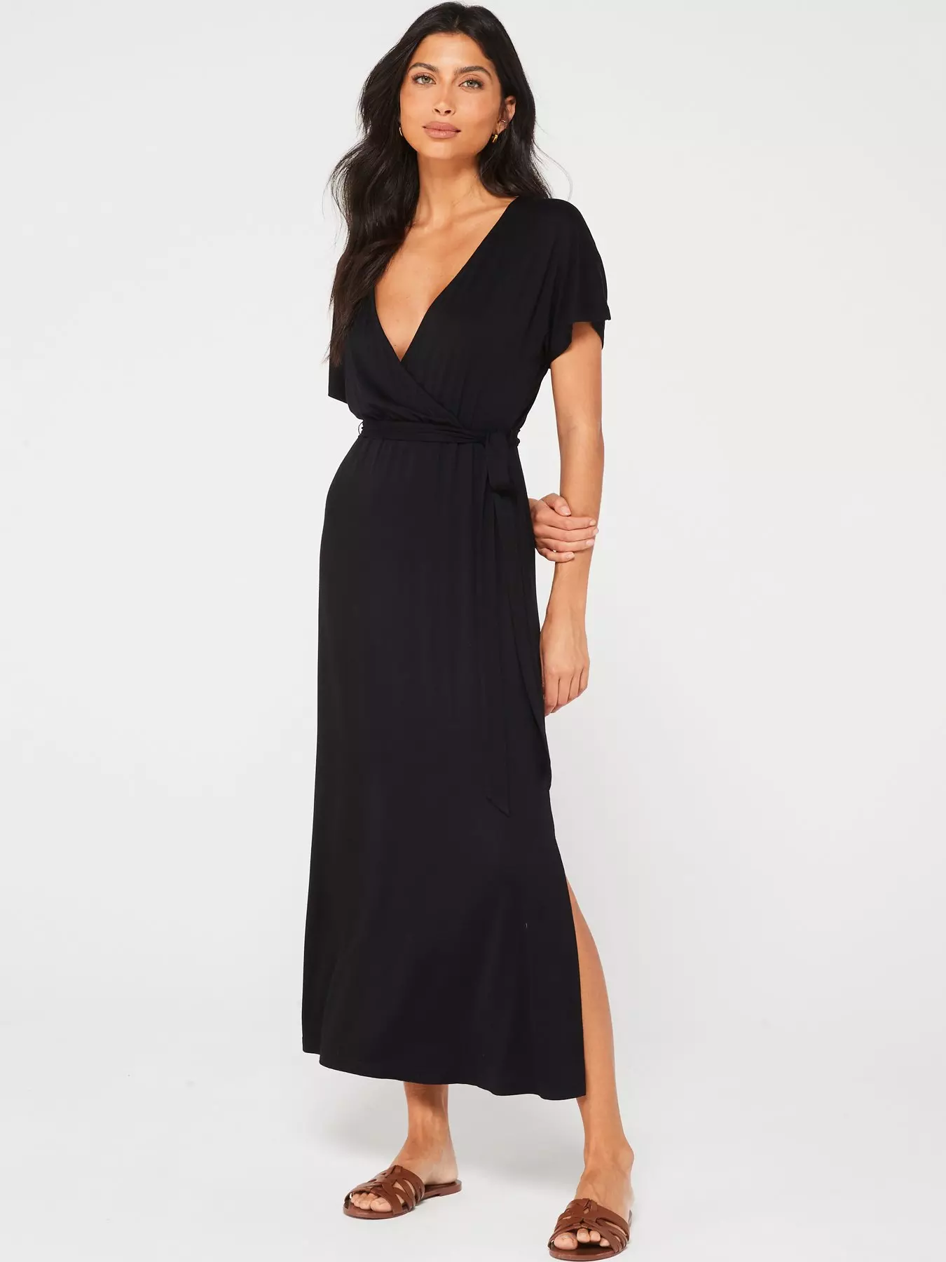 V by VeryJersey Wrap Beach Midi Dress - Black