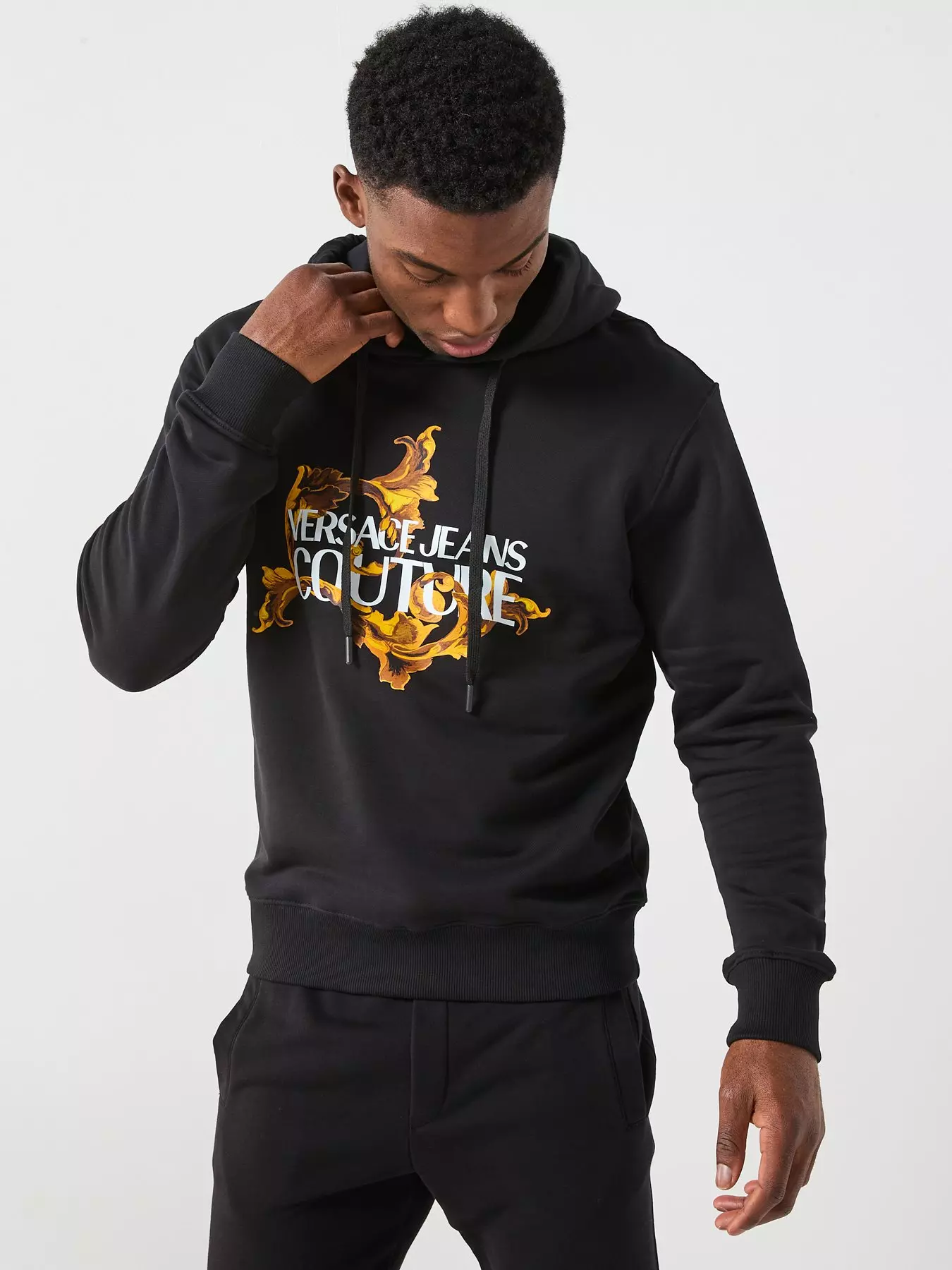 Versace Jeans CoutureBarocco Institutional Logo Overhead Hoodie - Black