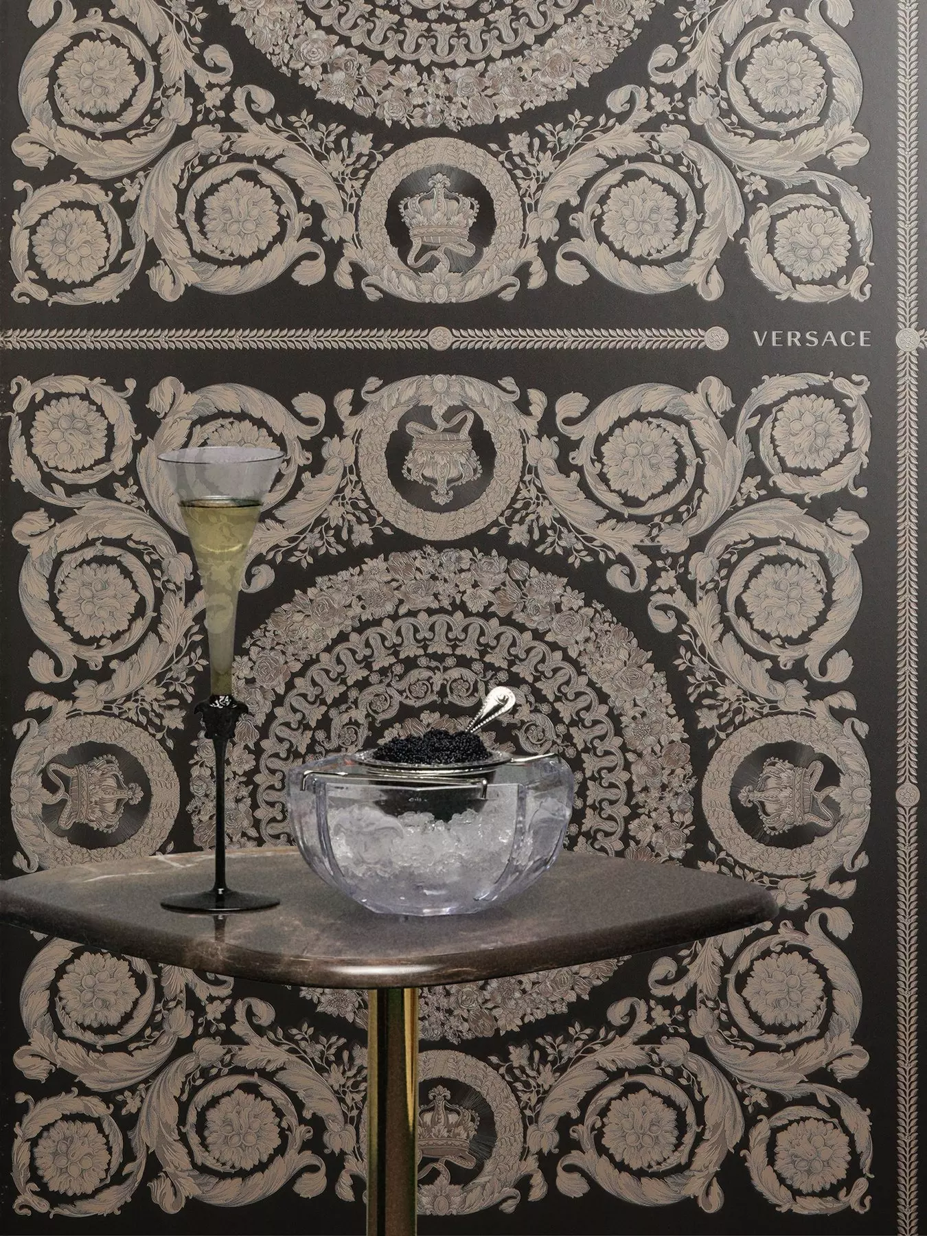 Bold and dramatic, this Versace wallpaper showcases an opulent baroque medallion against a deep dark background. Rich detailing and classical ornamentation deliver a powerful statement of luxury and heritage. Ideal for creating a striking feature wall that embodies the unmistakable style of Versace.- Depth: 8.4 CM