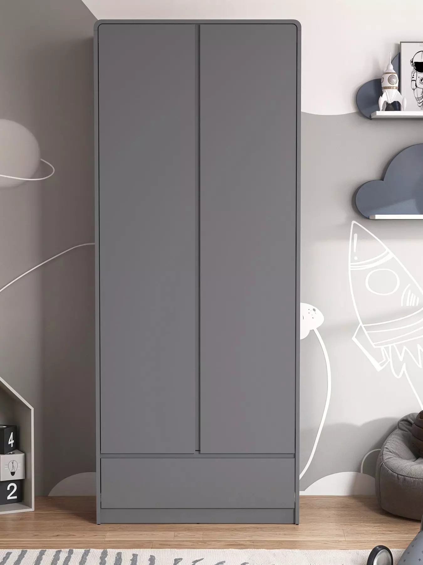 From the grown-up Bailey range of kids bedroom furniture, this wardrobe is all about the grey finish and a handle-free design that allows the smooth shade to shine through. Speaking of smoothness, the corners are neatly rounded, and the single drawer sits on friction-free easy-glide metal runners.Search Bailey to see the full collection.