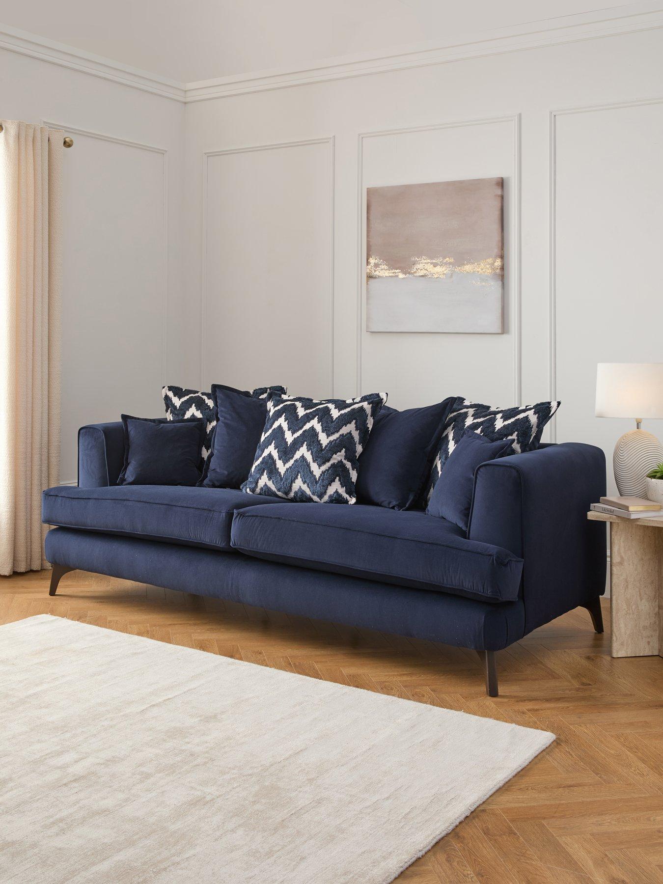 Very Home Mayfair 4 Seater Scatter Back Fabric Sofa in Navy, Silver or Natural - Made to Order in the UK