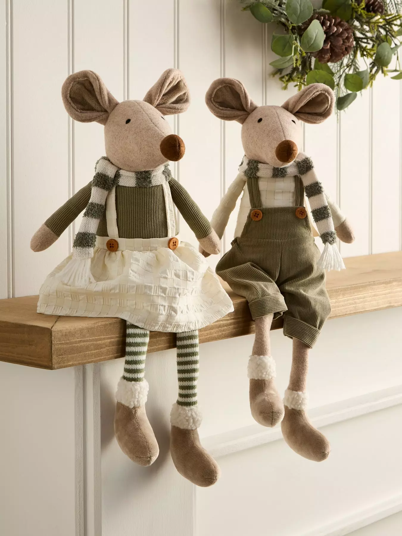 Very Home Set 2 Sitting Mice Christmas Decorations - 50 cm