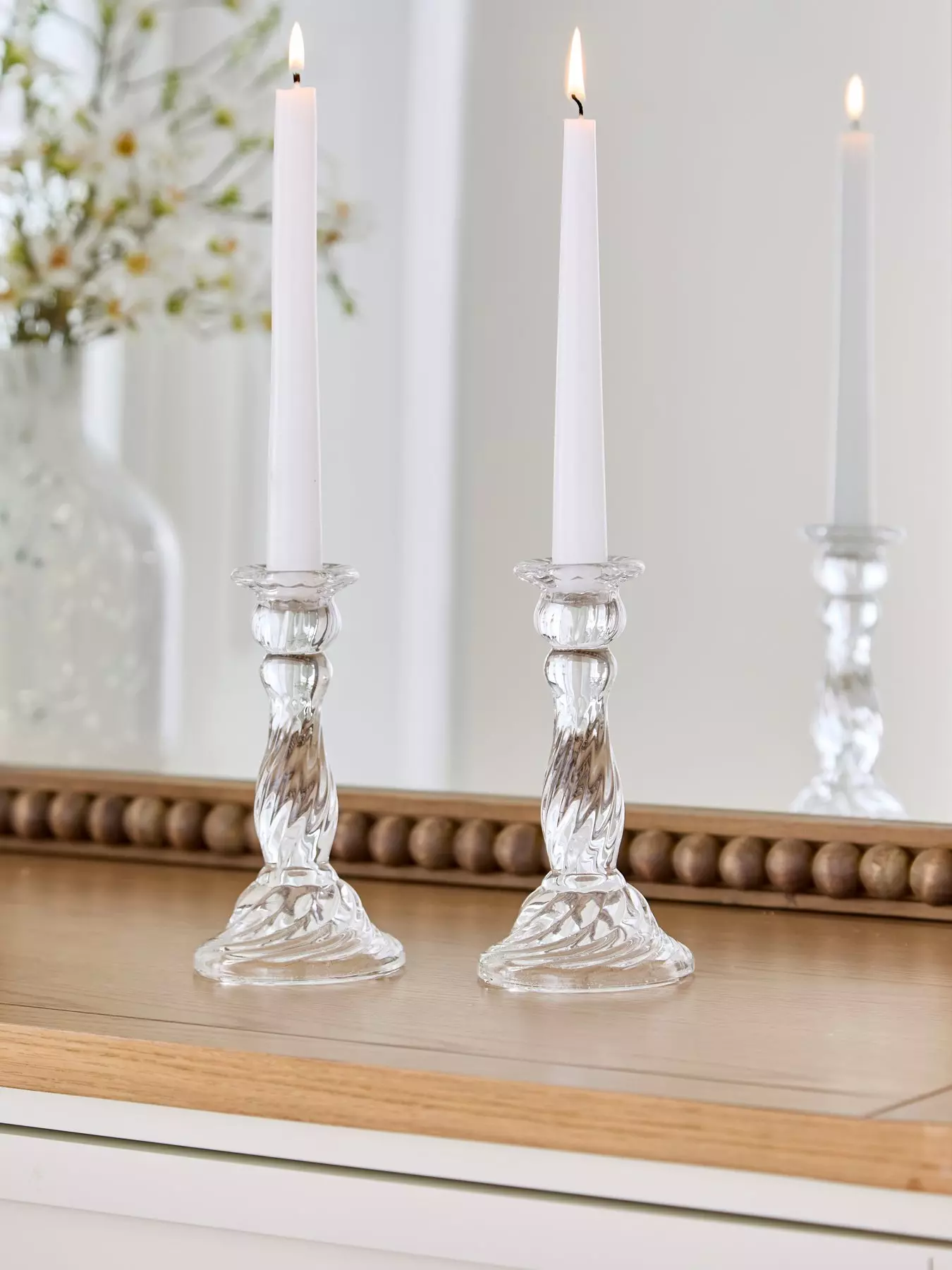 Set of 2 swirl glass candle holder- Depth: 8.5 CM
