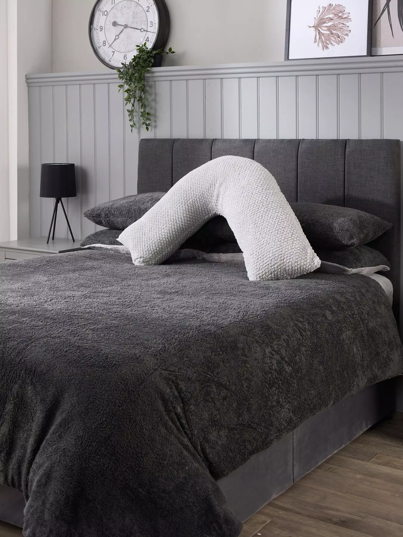 Snuggle up with the Huggleland Waffle Fleece V-Shaped Support Pillow with this blend of comfort and practicality. This super cosy pillow is generously filled for ultimate support and is perfect for relaxing whether you're sitting up or lying down.The soft and luxurious cable knit effect fabric provides a lovely warm and cosy feeling making it an ideal companion for chilly nights or lazy days.