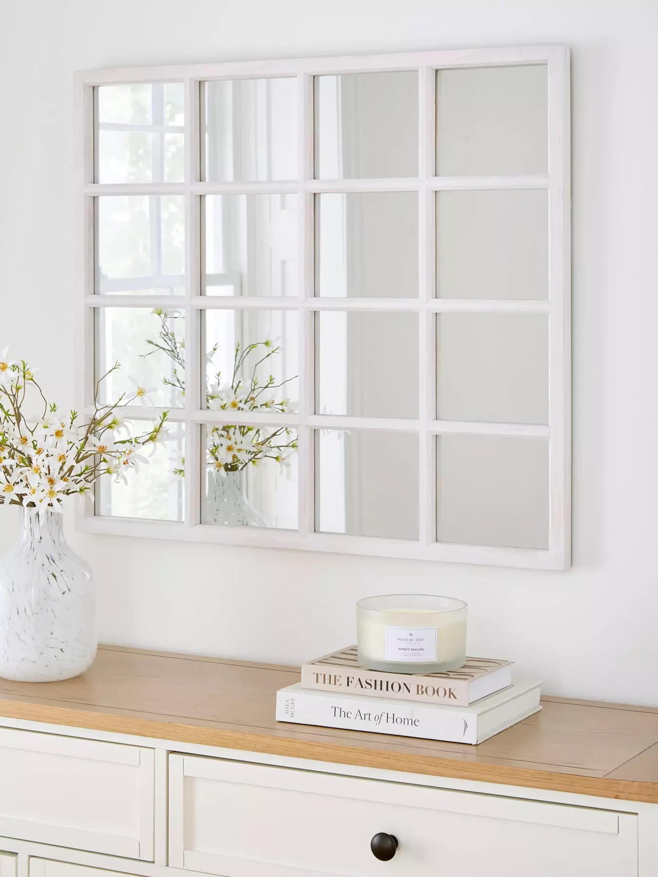 Very Home White Wooden Window Pane Mirror 74x84cm