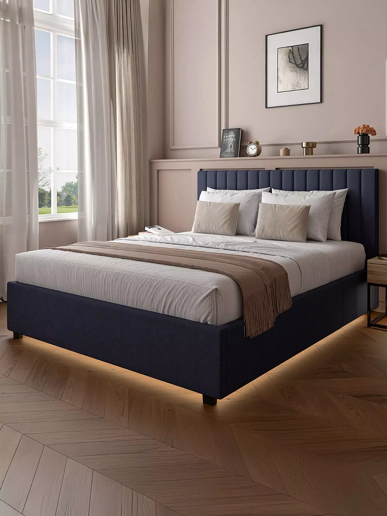 XR LivingMaisie Velvet Ottoman Bed with Under Frame LED Lights – Navy