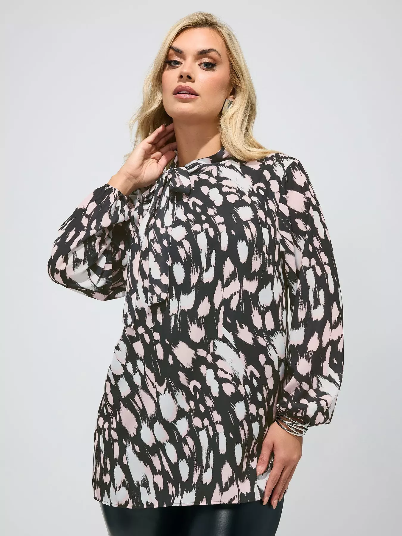 Animal print, Long balloon sleeves, Bow neck detail, High neckline, Made from a comfortable woven fabric, 100 polyester, Length from approx: 78cm/30.7, Machine washable- Material Content: 100% Polyester