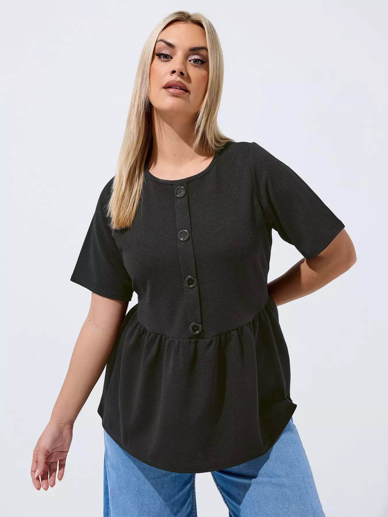 YoursCurve Button Down Peplum Top - Black