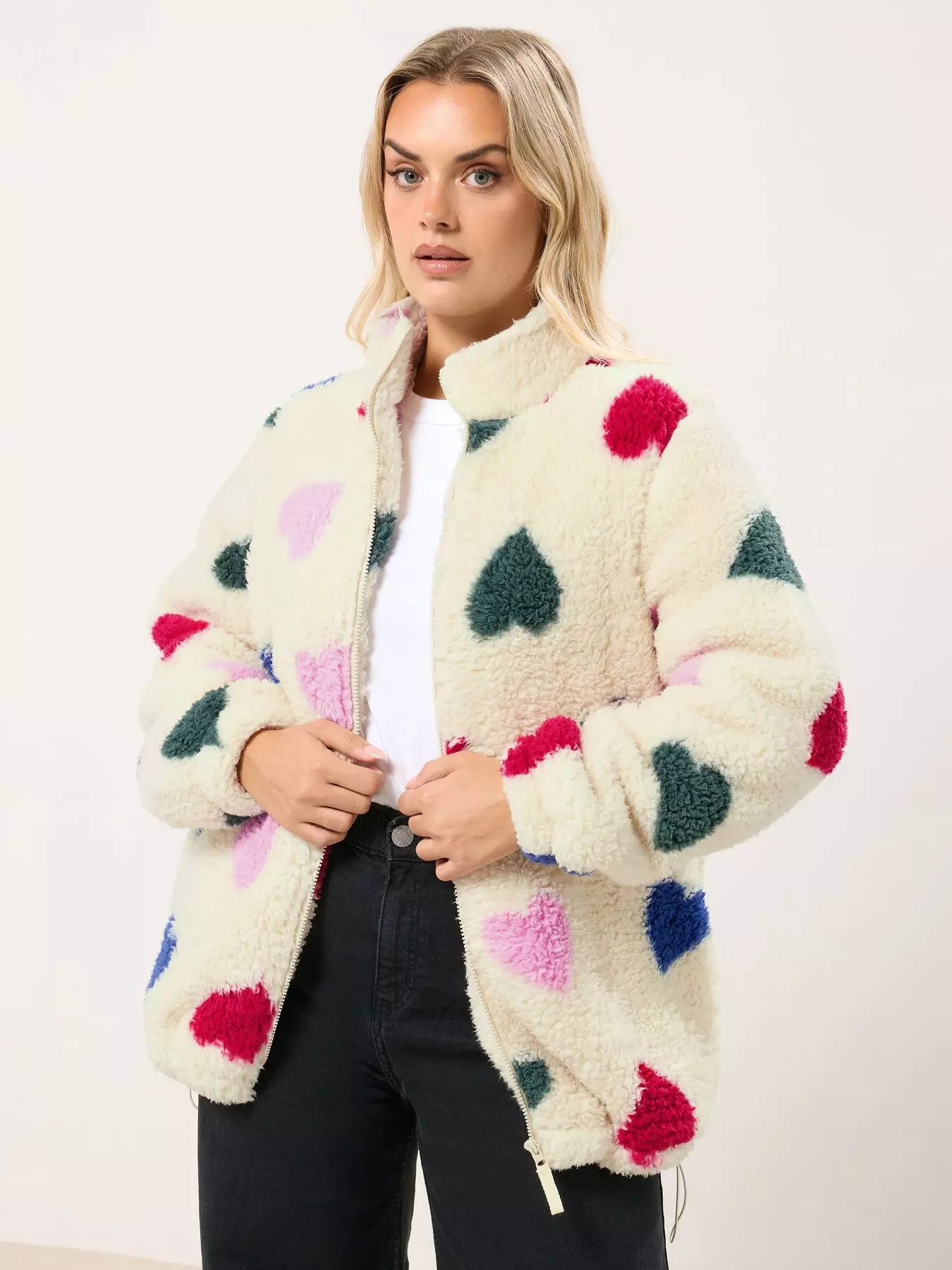 YoursCurve Colourful Hearts Sherpa Fleece - Natural