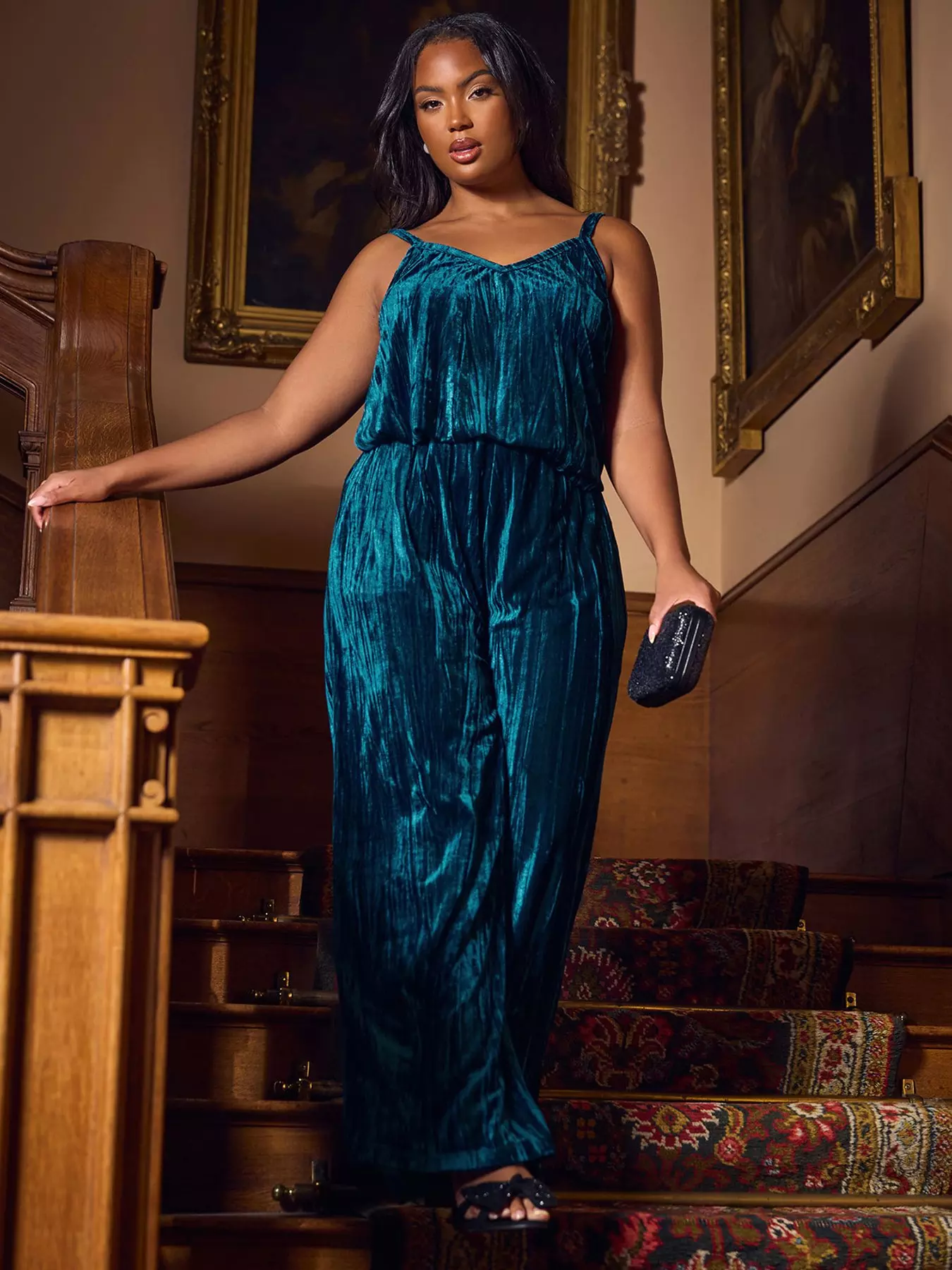- Curve Crushed Velour Wide Leg Trousers by Yours