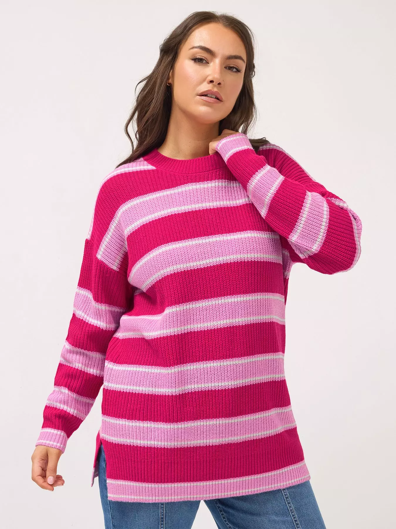YoursCurve Drop Shoulder Stripe Jumper - Pink