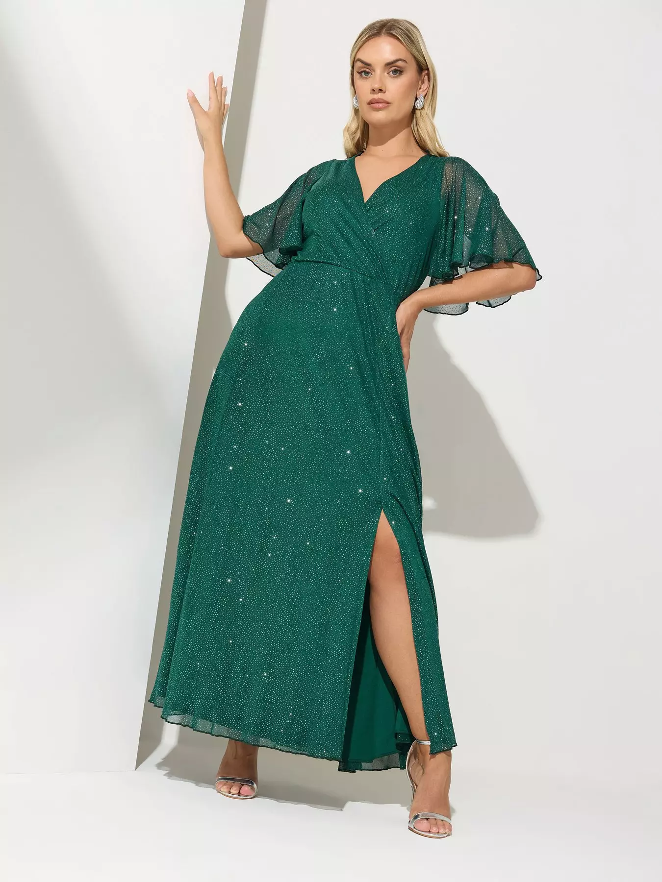 YoursCurve Glitter Wrap Mesh Maxi Dress - Green