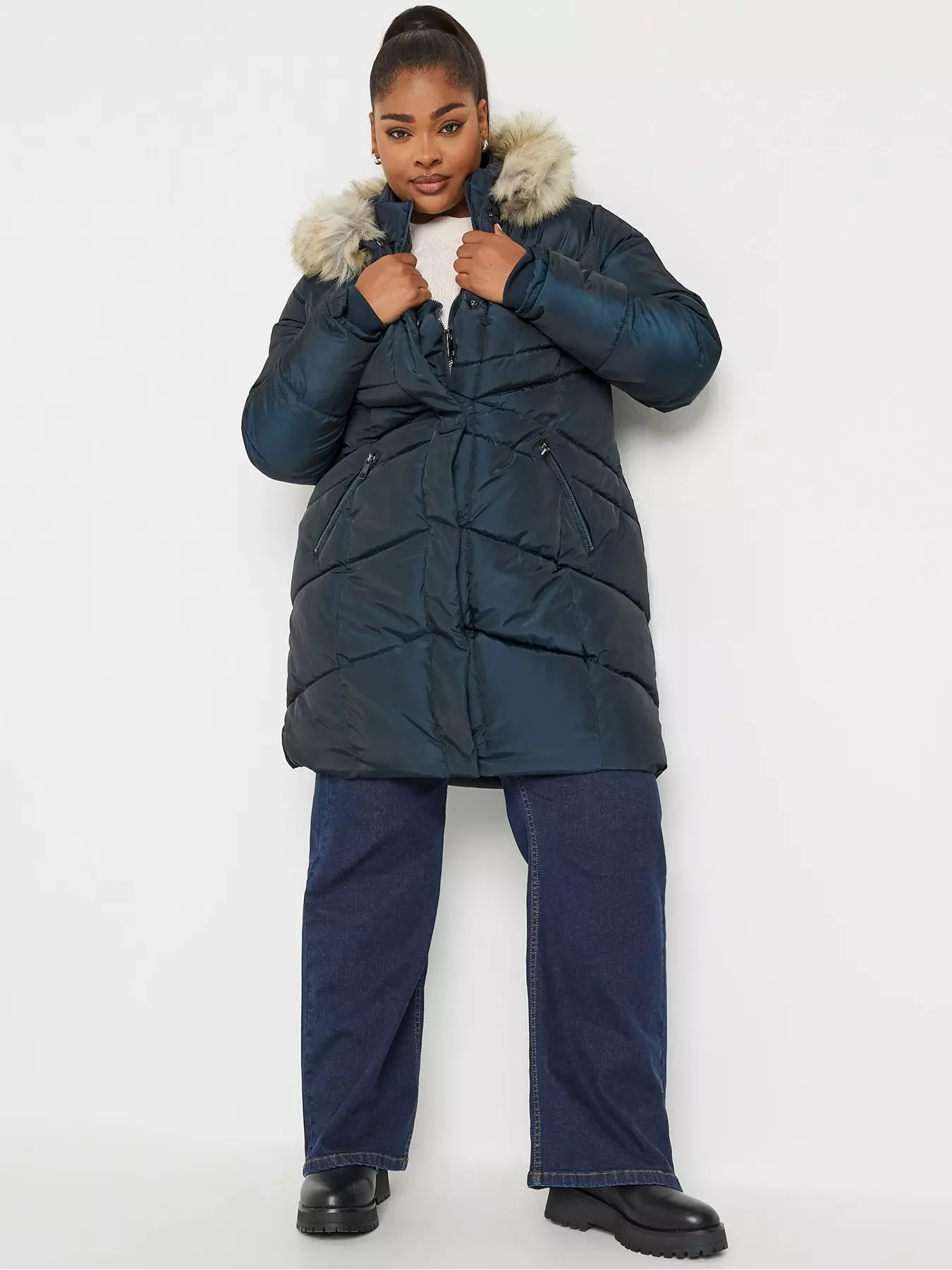Puffer style, Midi length, Faux fur trim, Hooded design, Two side pockets, Button and zip fastening, Made from a comfortable woven fabric, 100 polyester, Length from approx: 96cm/37.8, Machine washableMaterial & Care