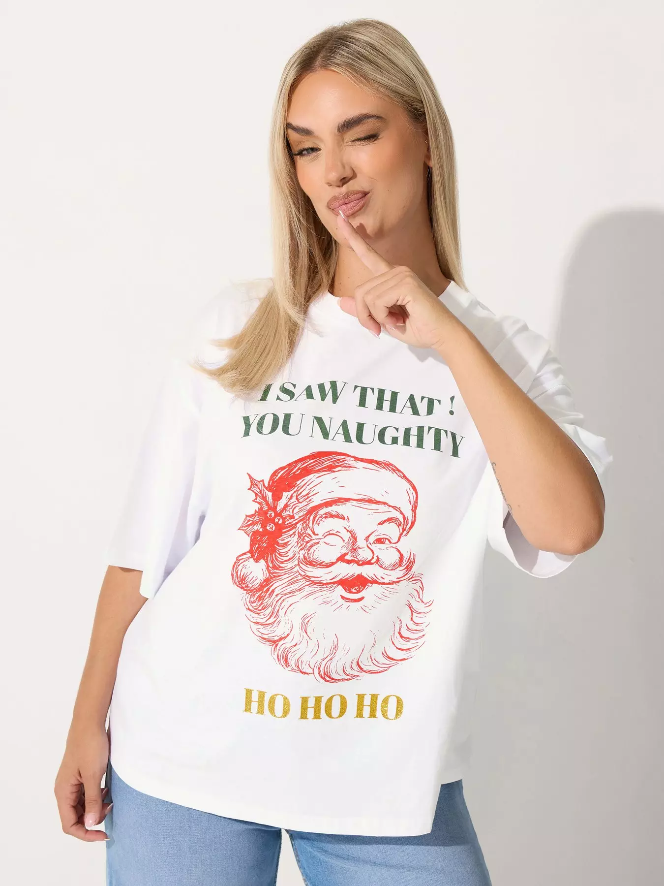 YoursCurve Naughty Ho Ho Ho T-Shirt - White
