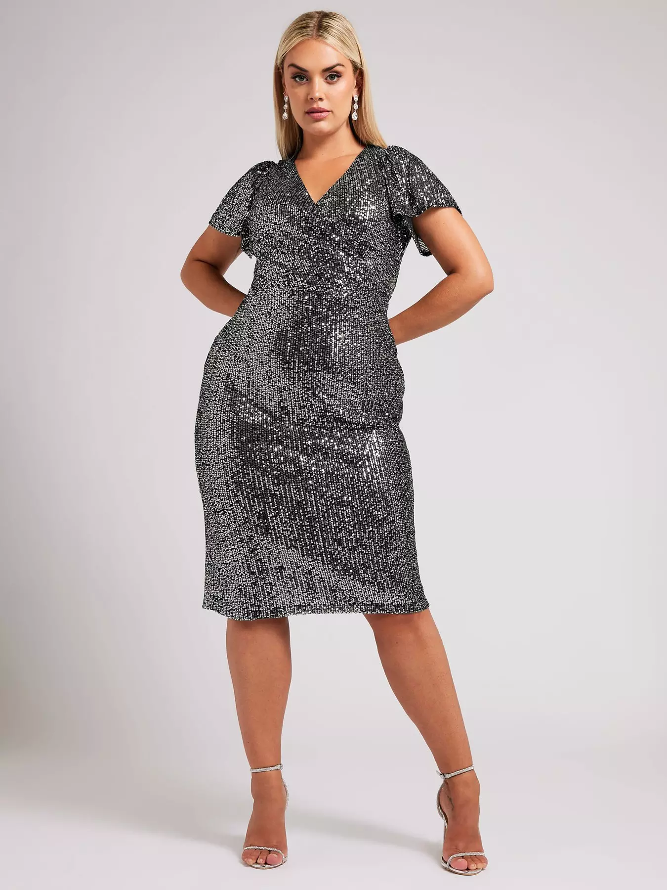 YoursCurve Sequin Wrap Shift Dress - Silver