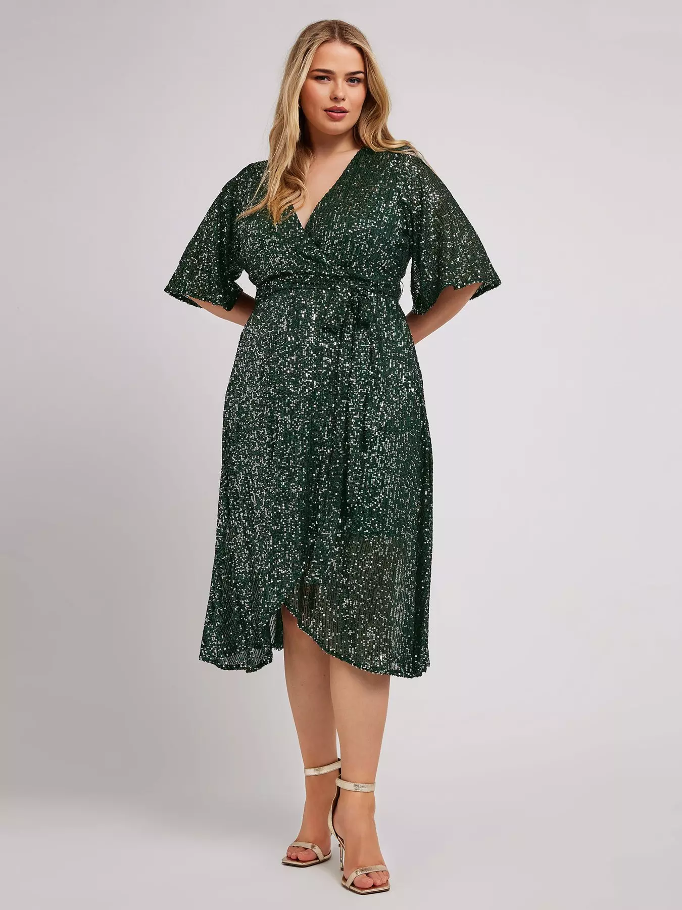 YoursCurve Sequin Wrap Tulip Dress - Green