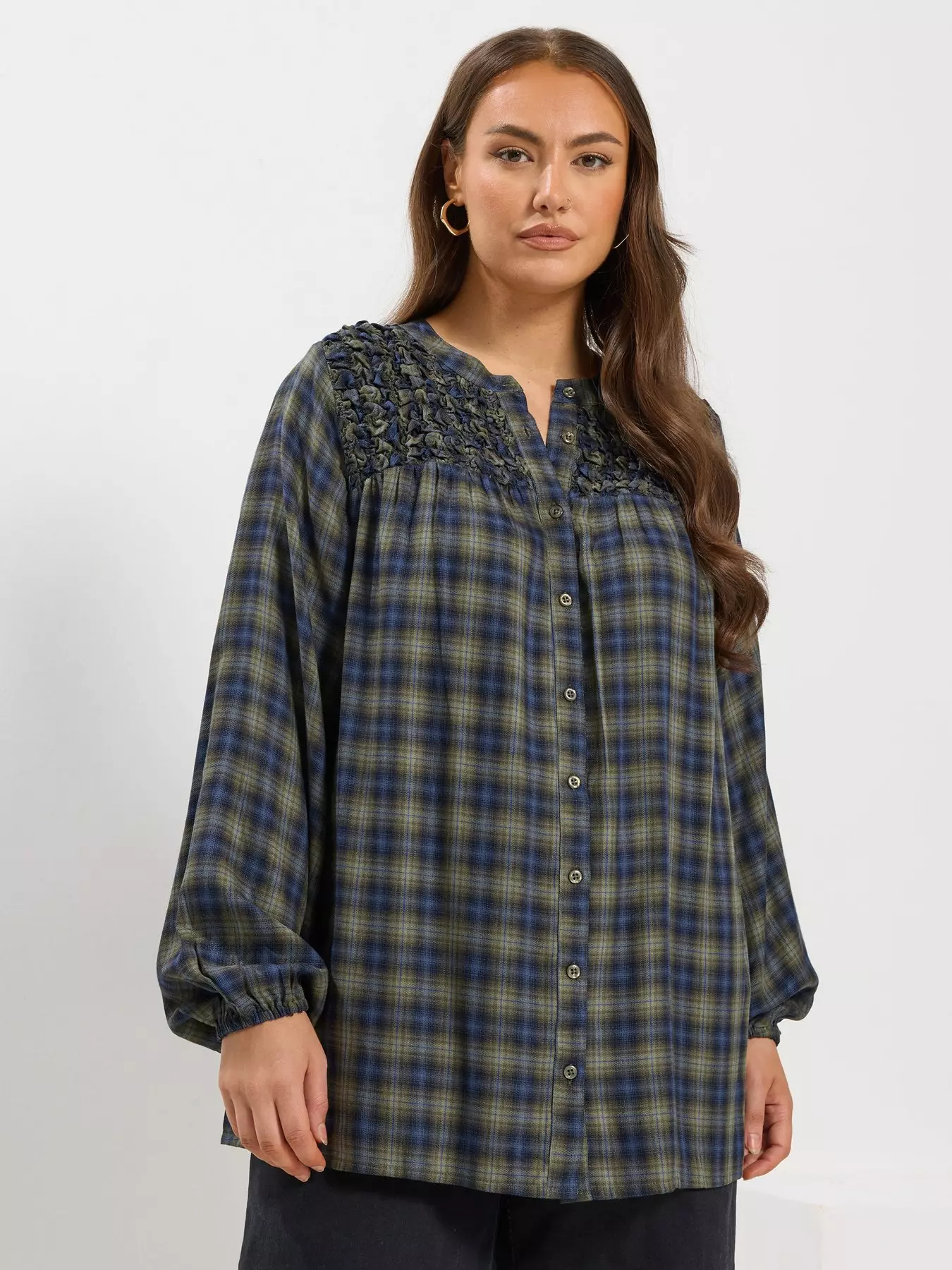 Yours Curve Shirred Panel Check Blouse