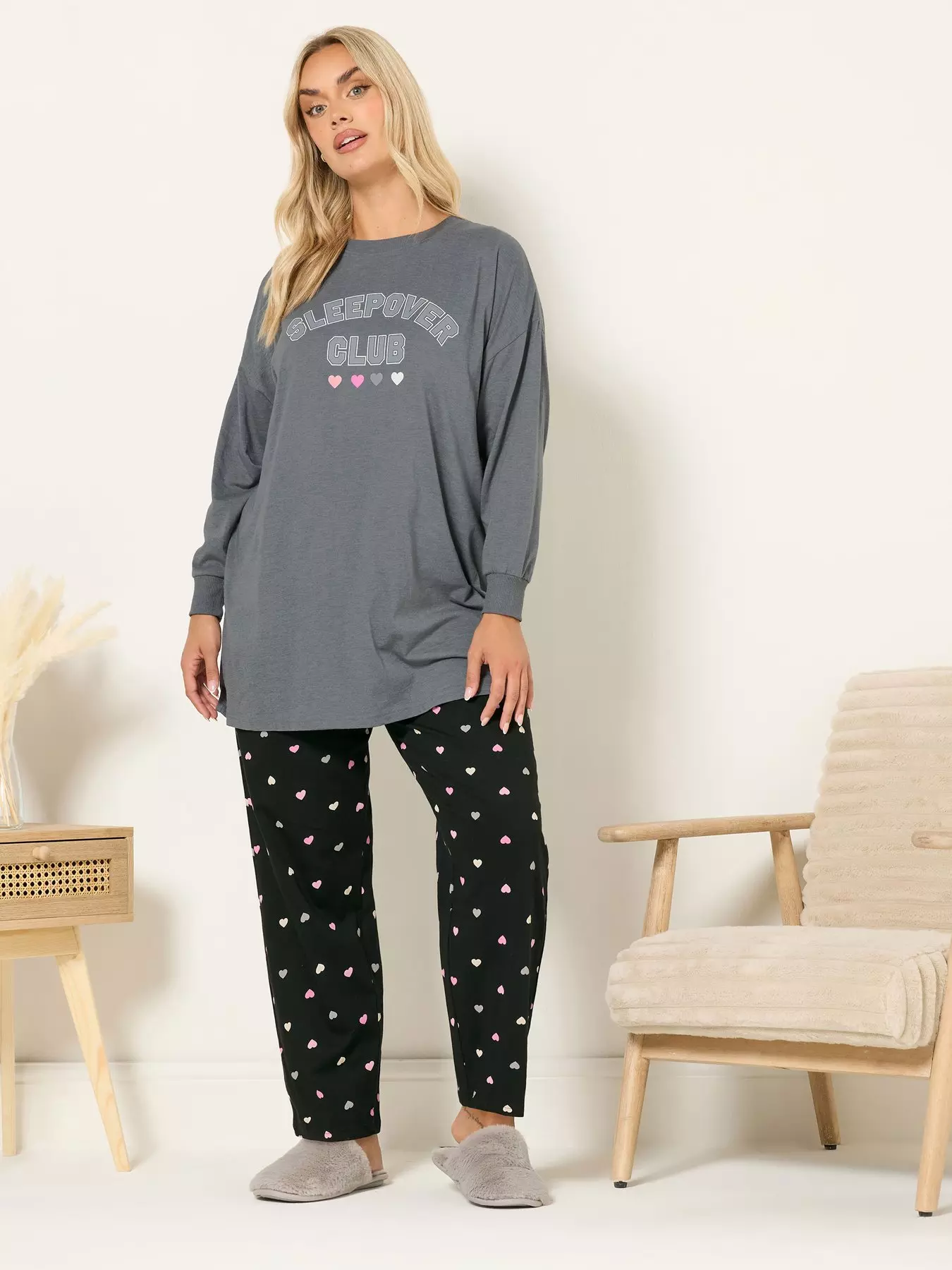YoursCurve Sleepover Club Pyjama Set - Grey
