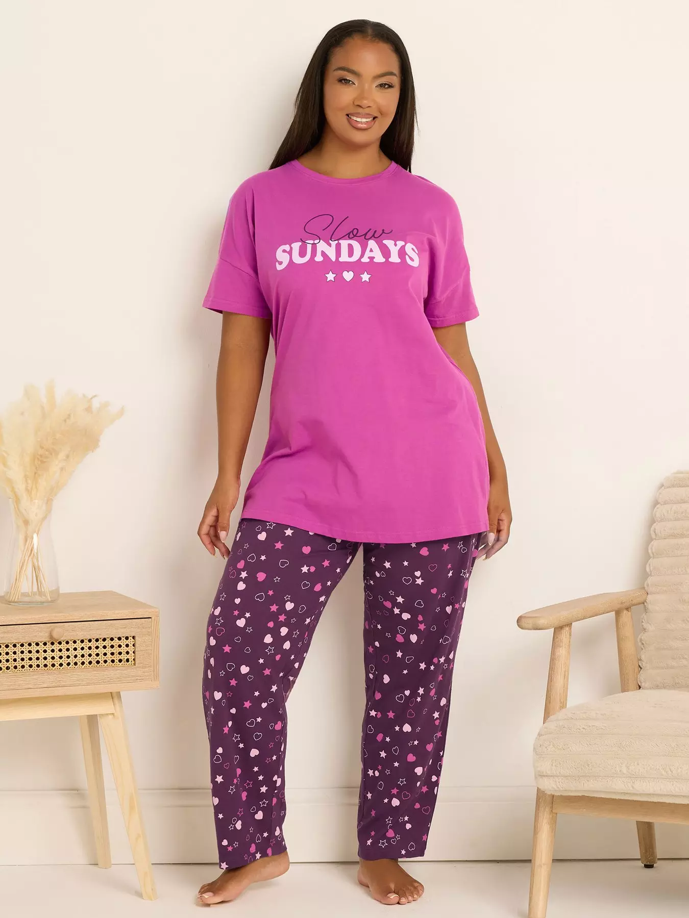 - Curve Slow Sunday Wide Leg Pyjama Set by Yours