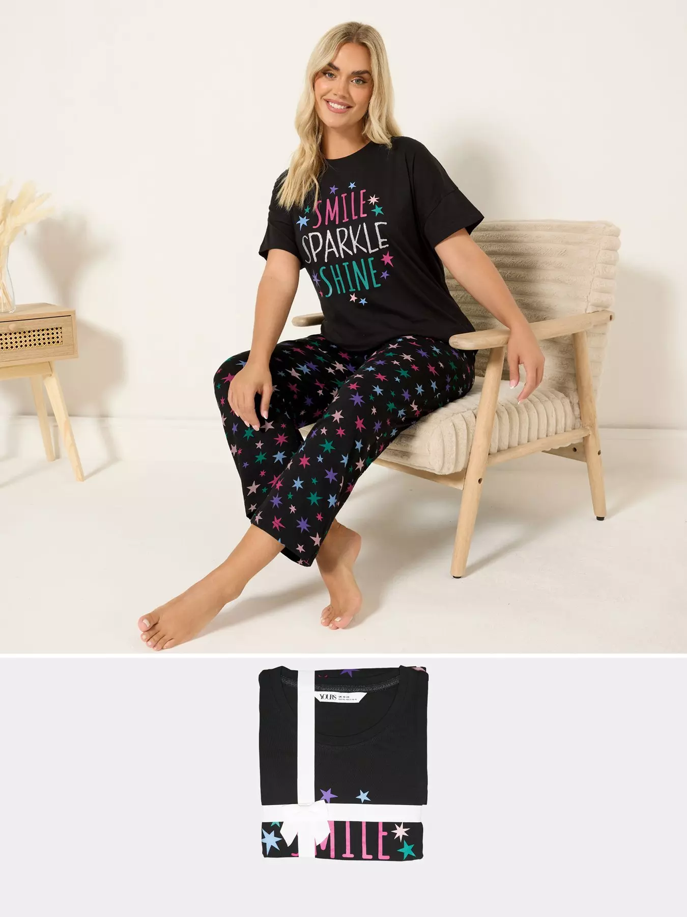 YoursCurve Sparkle Shine Wide Leg Pyjama Set - Black
