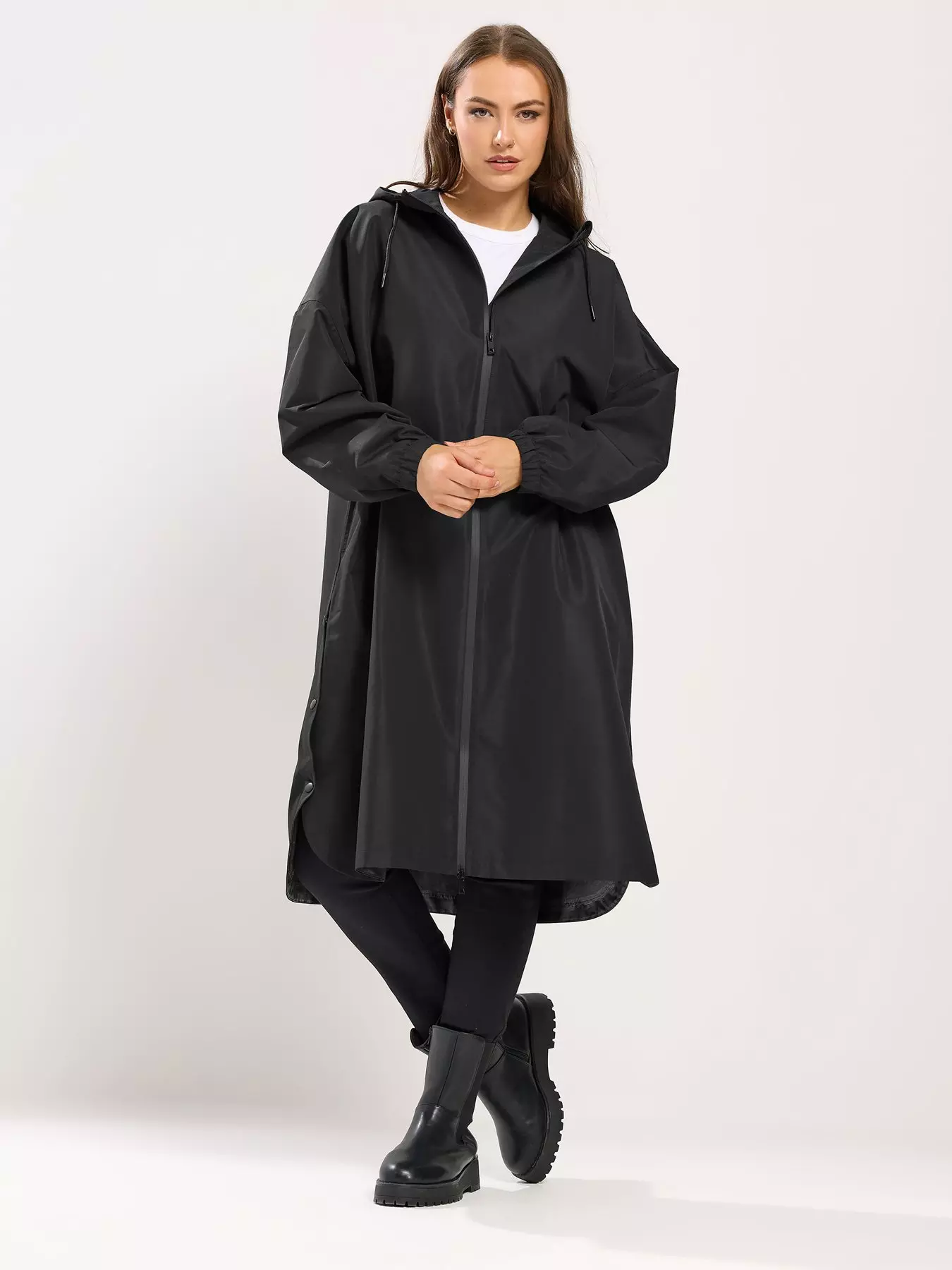 Longline, Waterproof, Hood with drawstringd, Long cuffed sleeves, Zip fastening, Two side pockets, Made from a lightweight woven fabric, 100 polyester, Length from approx: 110cm/43.3, Machine washableAbout the brand: