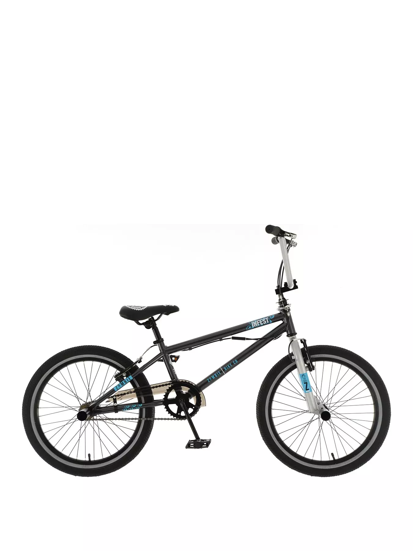 The Zombie Infest 20" BMX delivers everything a young rider needs to develop their skills and look good doing it. Its pro-inspired colour scheme ensures you stand out at the park or on the street, while the hi-tensile steel frame and fork provide the strength for everyday BMX riding.Equipped with a 360° gyro system; 360° gyro system which allows full rotation of the handlebars without effecting the brake, one set of stunt pegs, and alloy V-brakes, the Infest offers full control and freestyle versatility. 36-hole wheels and a 36T chainring with 16T freewheel keep your ride smooth and reliable, no matter how hard you push it.